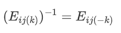 某一行(列)加上另一行(列)的倍数的初等矩阵的逆矩阵是将该行(列)减去另一行(列)的 k 倍,即