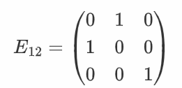 交换单位矩阵的第 i 行和第 j 行(列)得到的初等矩阵记作 Eij。例如,交换单位矩阵的第 1 行和第 2 行得到的初等矩阵为:
