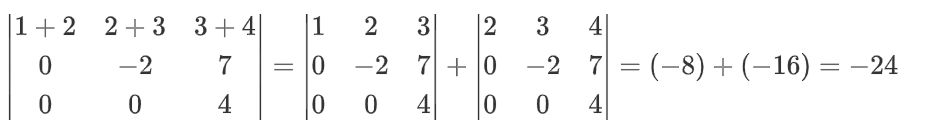 推论:如果行列式的某一行(或某一列)的所有元素都有公因子 k,那么这个公因子 k可以提取到行列式外面一次。