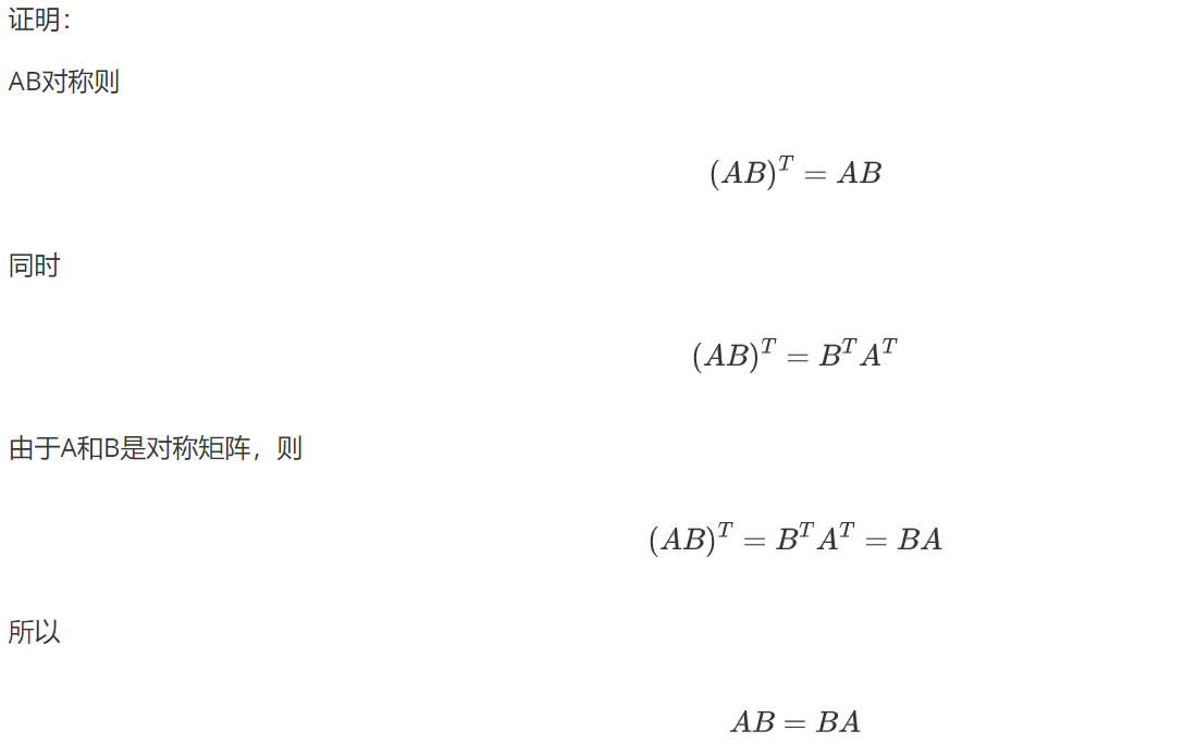 矩阵A和B为同阶对称矩阵,AB对称的充要条件为AB=BA