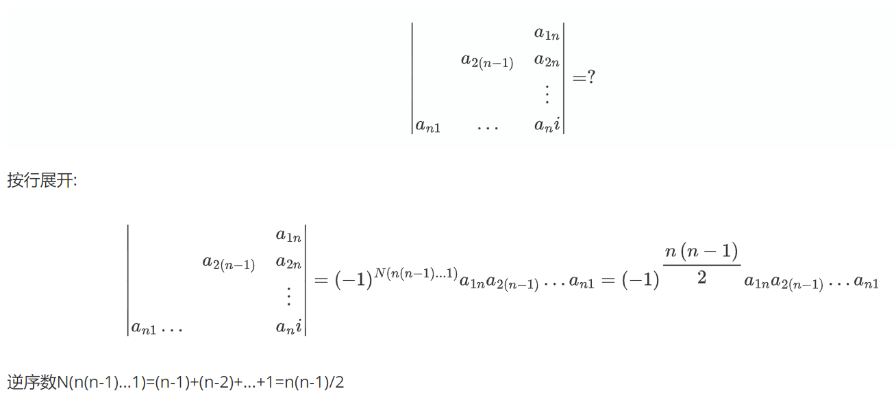 ④列标排列的逆序数的奇偶性决定运算符号,逆序数为偶数的运算符号为+,奇数的运算符号为-