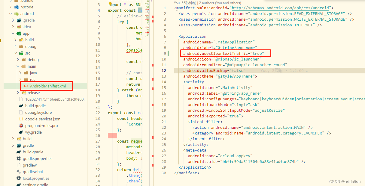 react-native打包apk后http请求接口不到解决方法