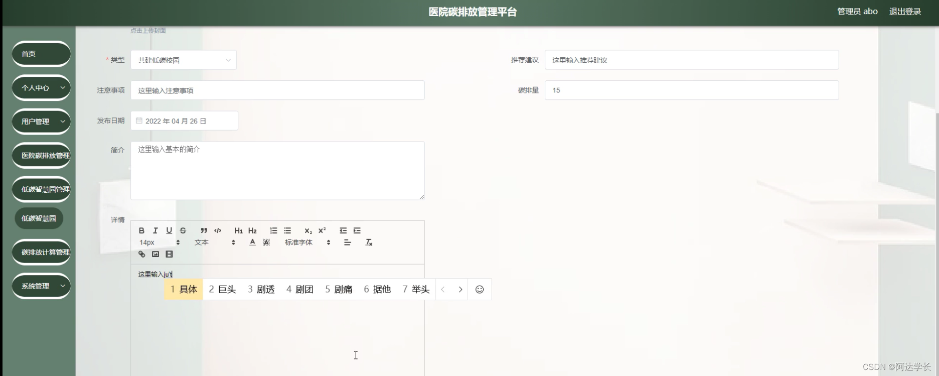 springboot毕设项目医院碳排放管理平台r392w(java+VUE+Mybatis+Maven+Mysql)