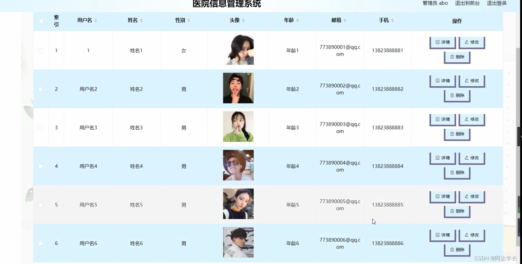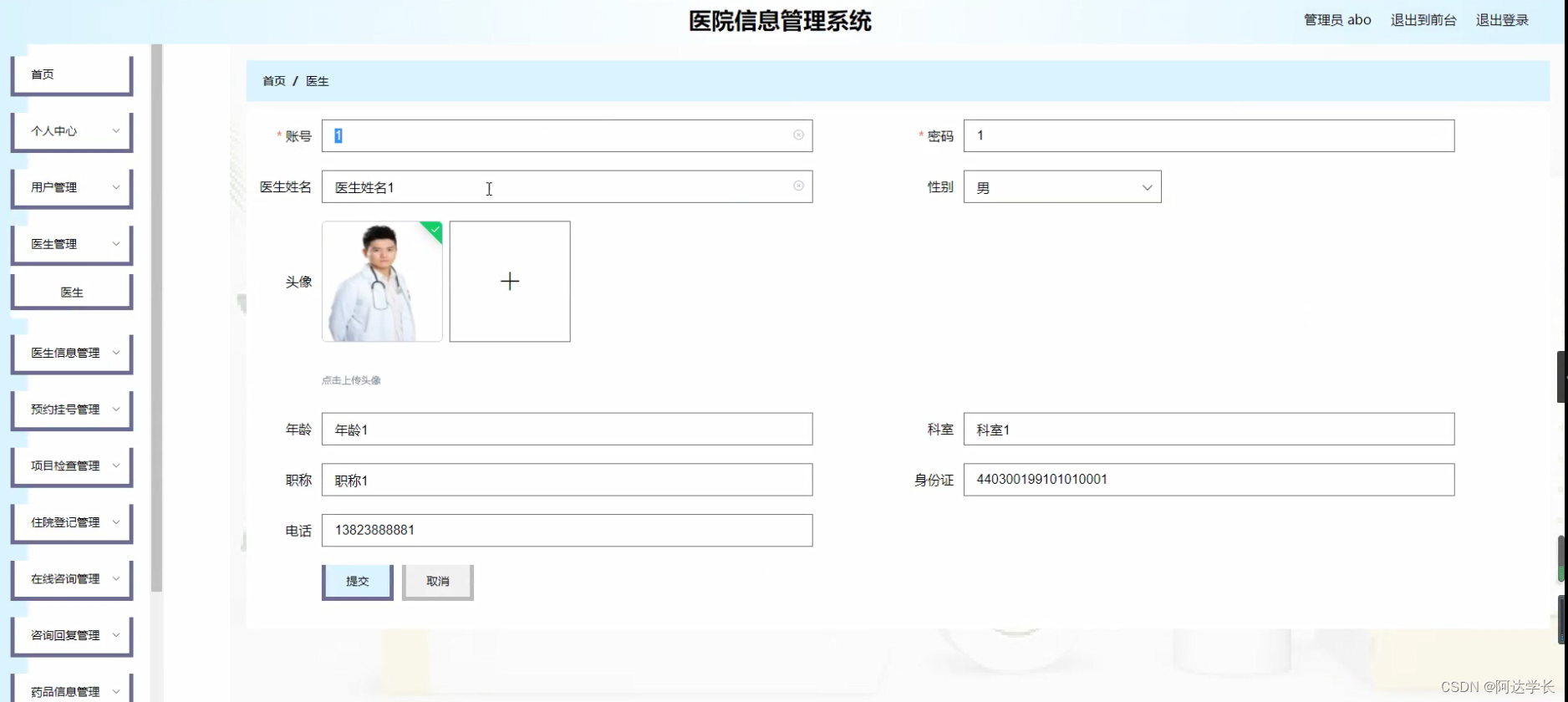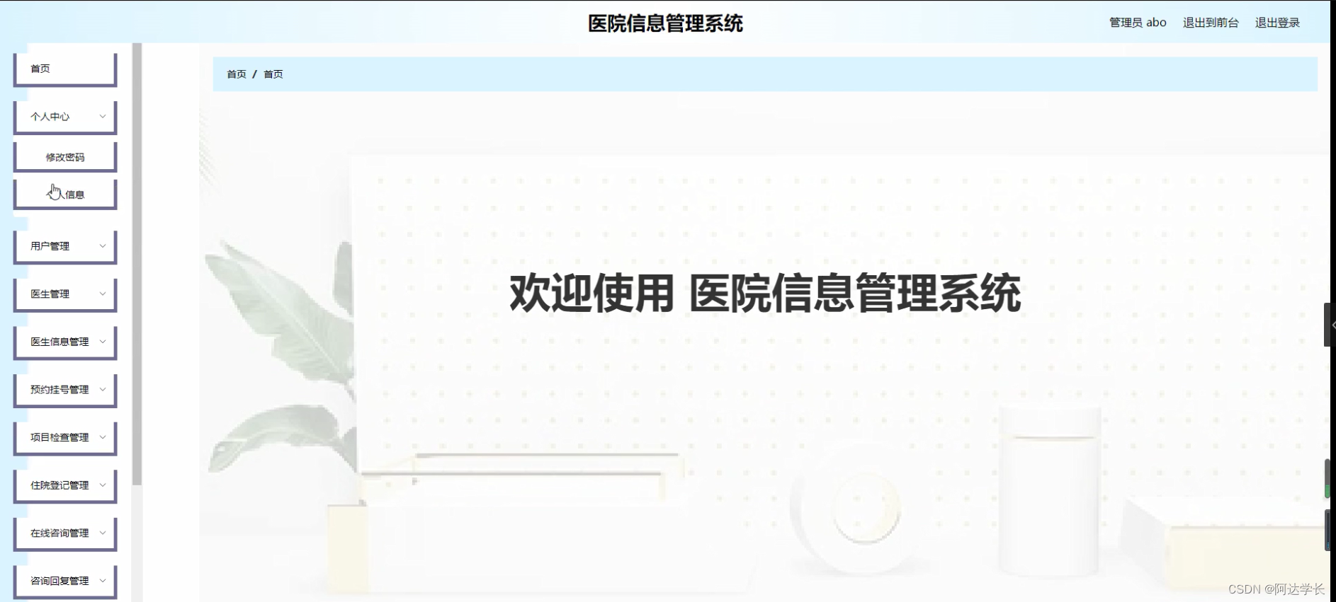 springboot毕设项目医院信息管理系统7ui9s(java+VUE+Mybatis+Maven+Mysql)