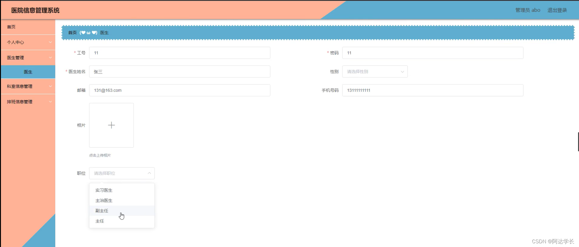 springboot毕设项目医院信息管理系统zv6ni(java+VUE+Mybatis+Maven+Mysql)