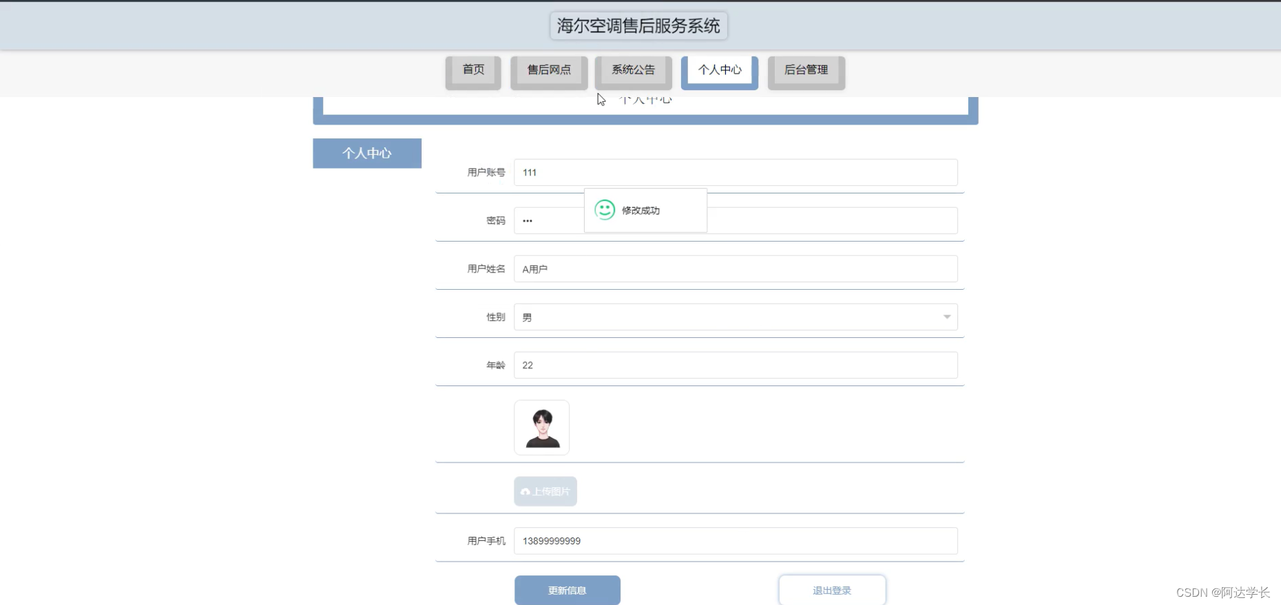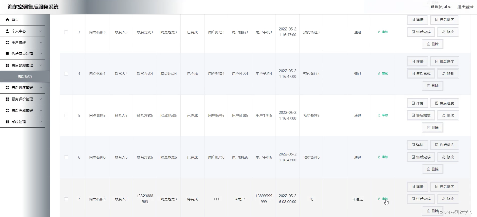 Springboot毕设项目海尔空调售后服务系统r300ijava+VUE+Mybatis+Maven+Mysql+sprnig)