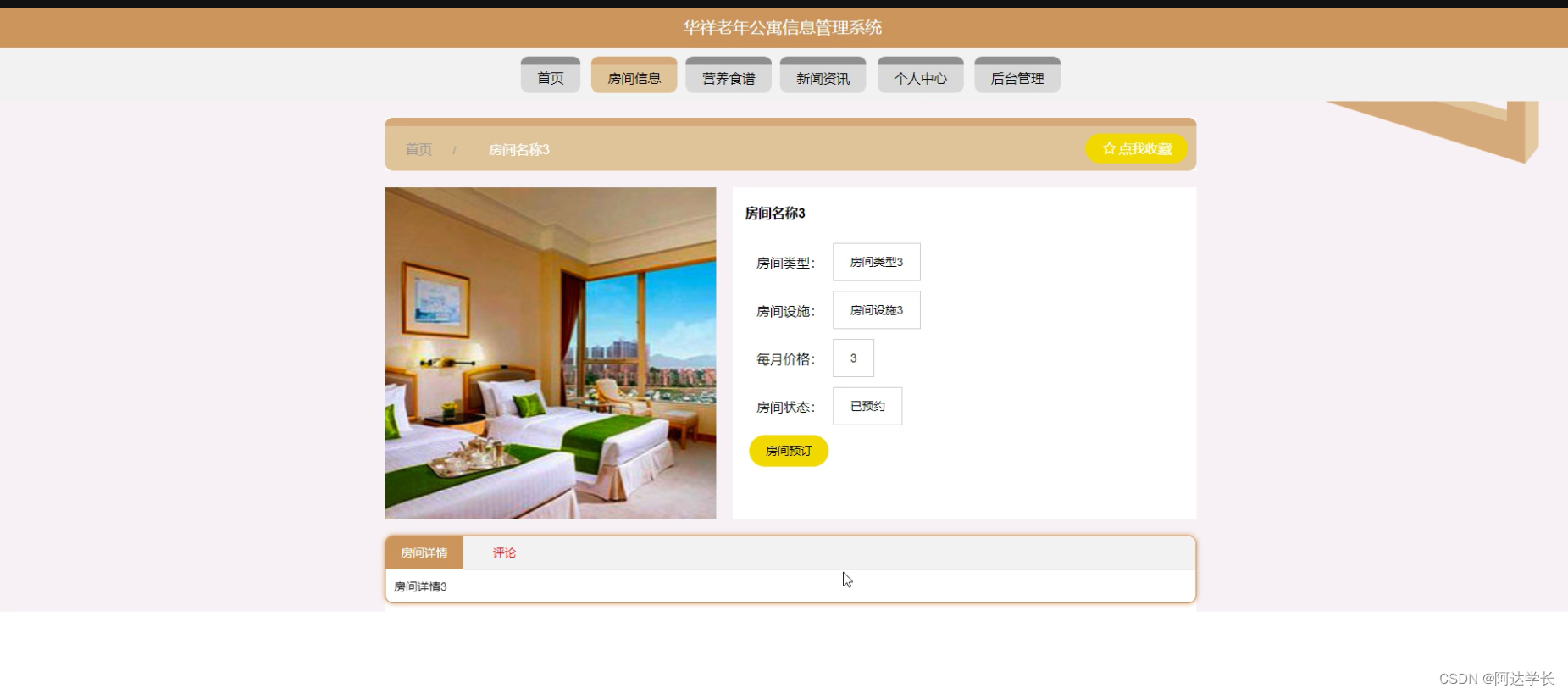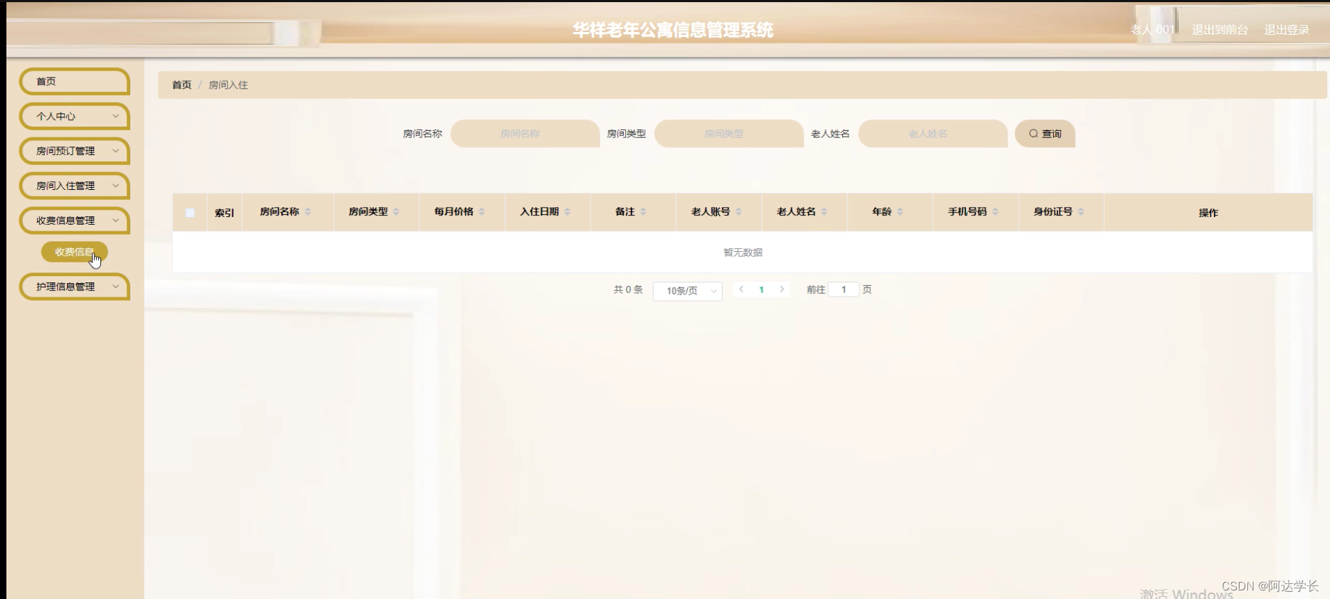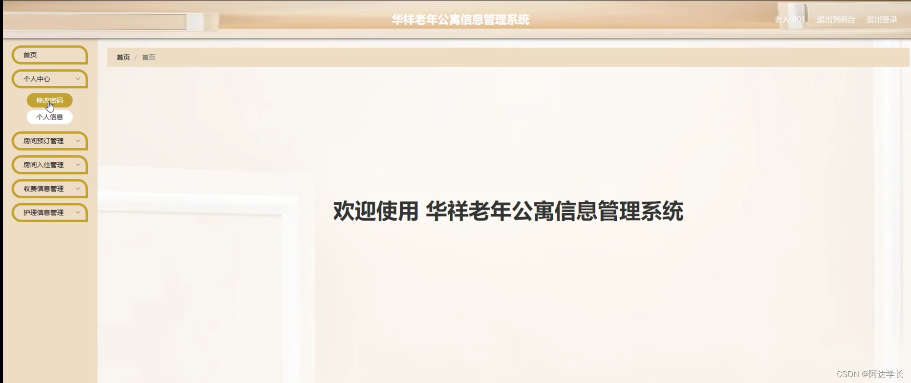 Springboot毕设项目华祥老年公寓信息管理系统260d1java+VUE+Mybatis+Maven+Mysql+sprnig)