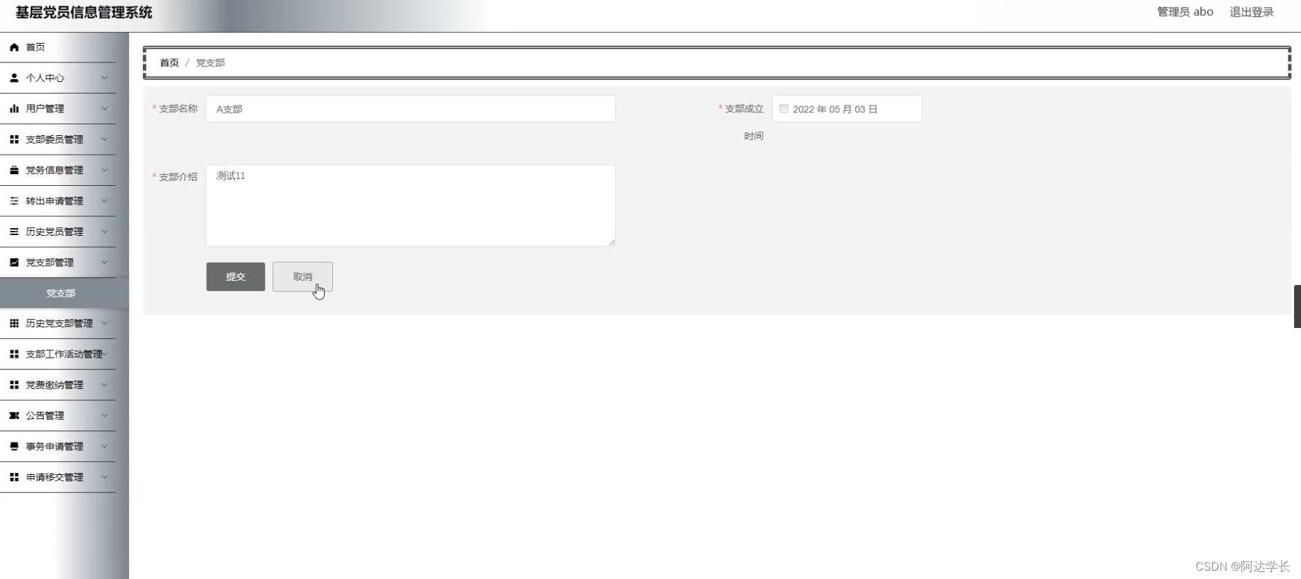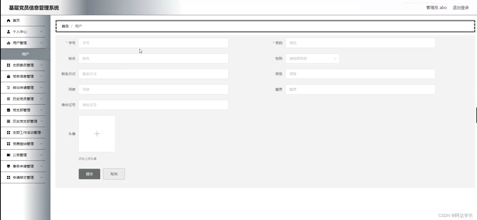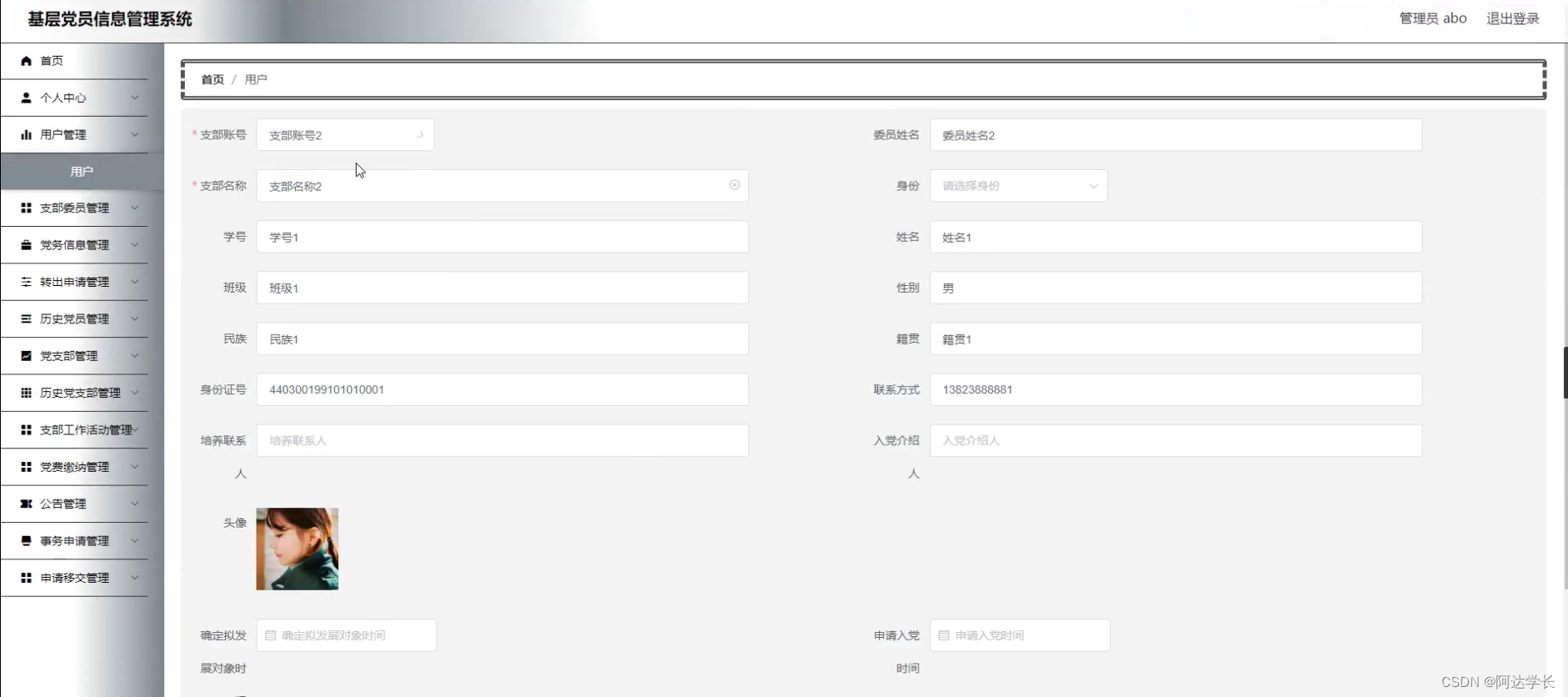 Springboot毕设项目基层党员信息管理系统ha5ipjava+VUE+Mybatis+Maven+Mysql+sprnig)