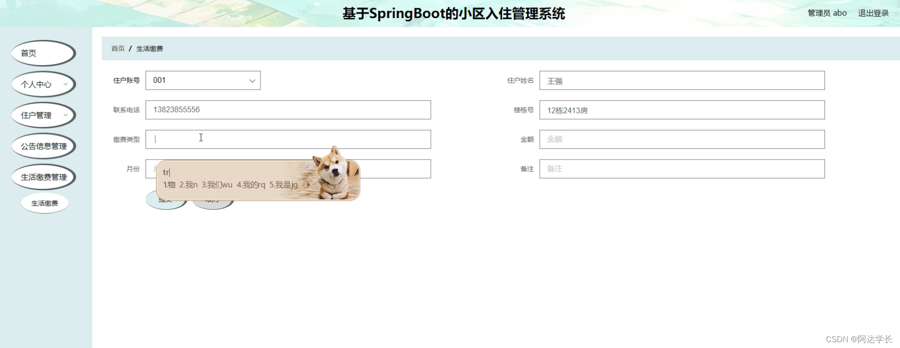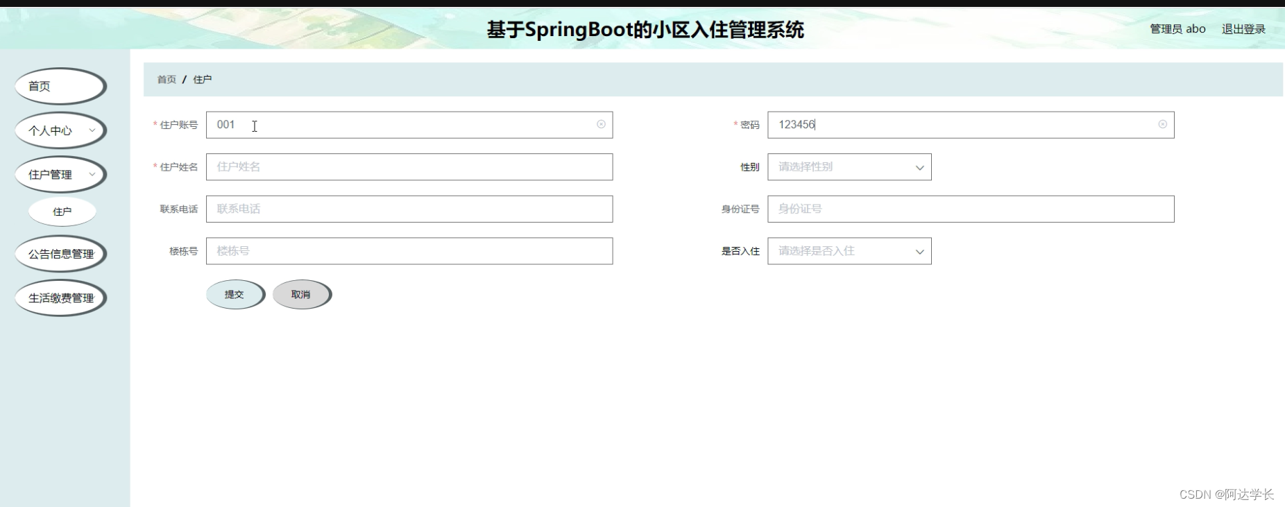 Springboot毕设项目基于SpringBoot的小区入住管理系统1dc22java+VUE+Mybatis+Maven+Mysql+sprnig)