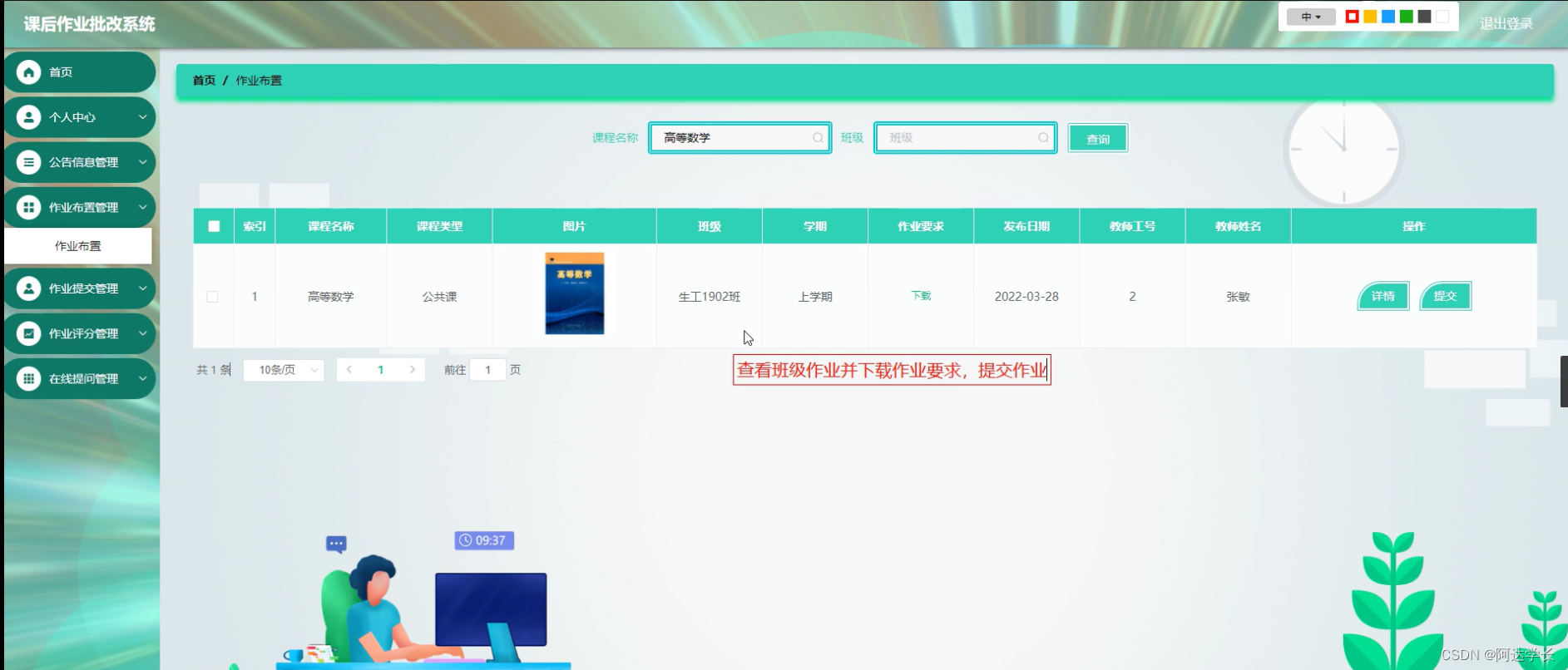 Springboot毕设项目课后作业批改系统5l353java+VUE+Mybatis+Maven+Mysql+sprnig)