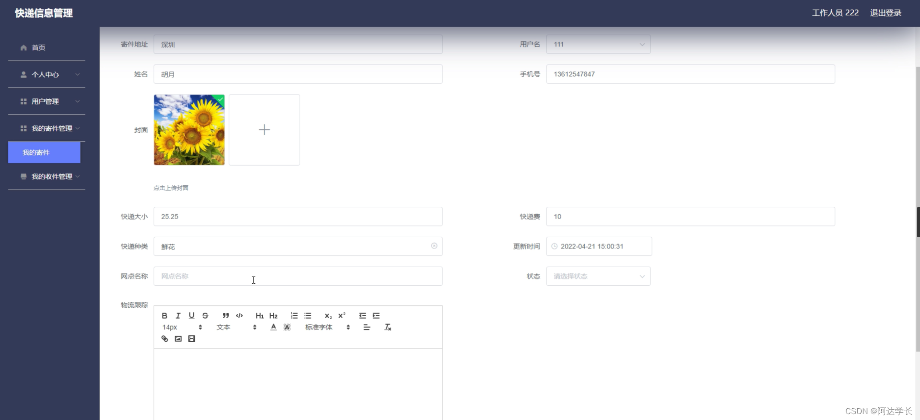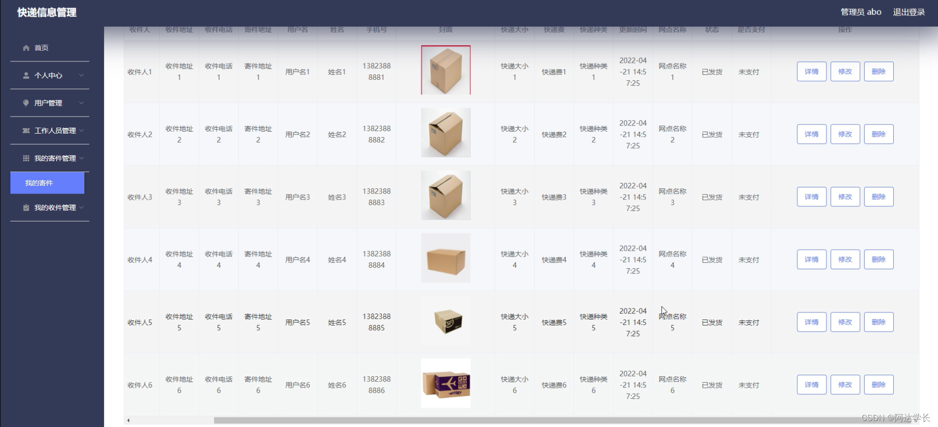 Springboot毕设项目快递信息管理52c05java+VUE+Mybatis+Maven+Mysql+sprnig)