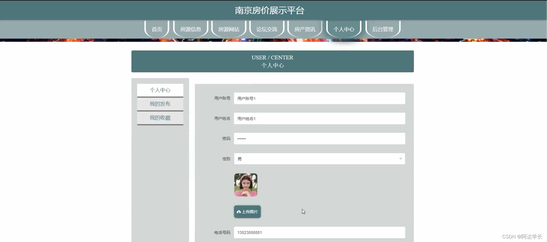 Springboot毕设项目南京房价展示平台3hvmfjava+VUE+Mybatis+Maven+Mysql+sprnig)