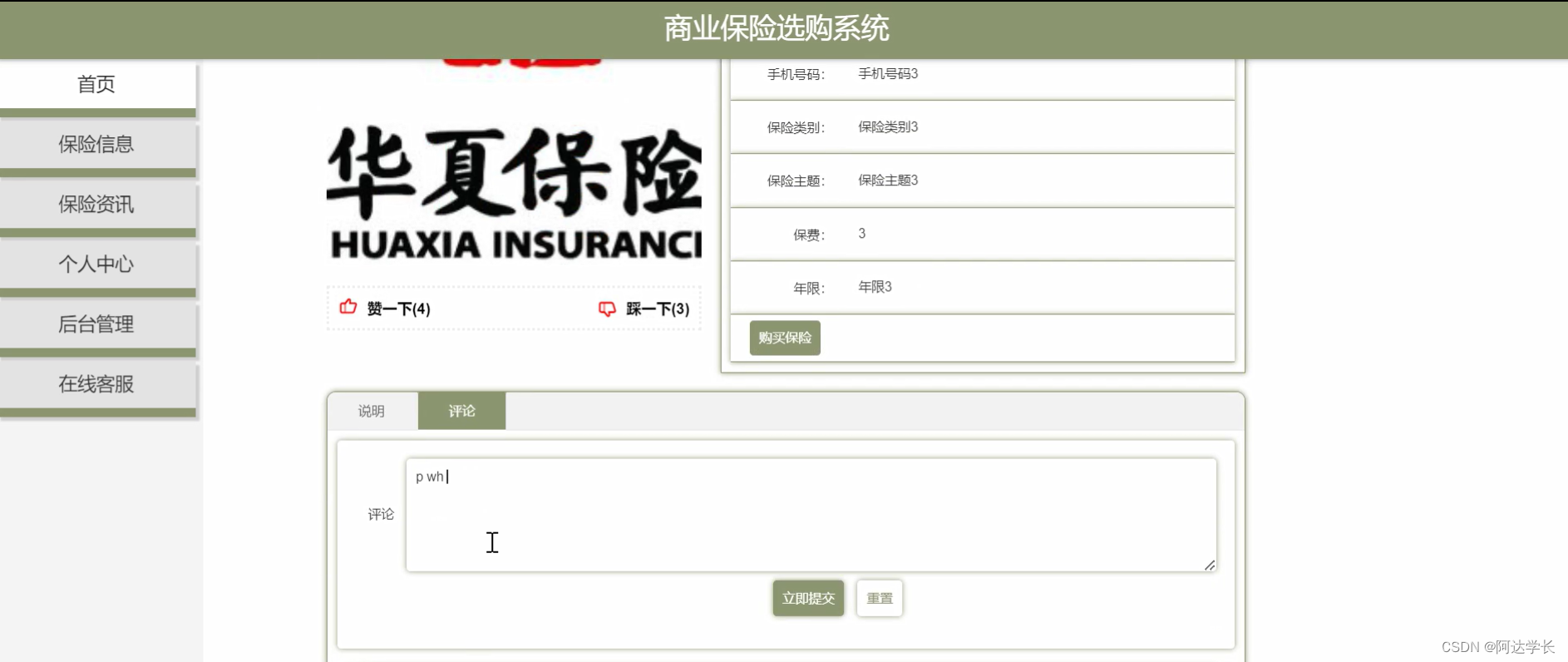 Springboot毕设项目商业保险选购系统0u1s4java+VUE+Mybatis+Maven+Mysql+sprnig)