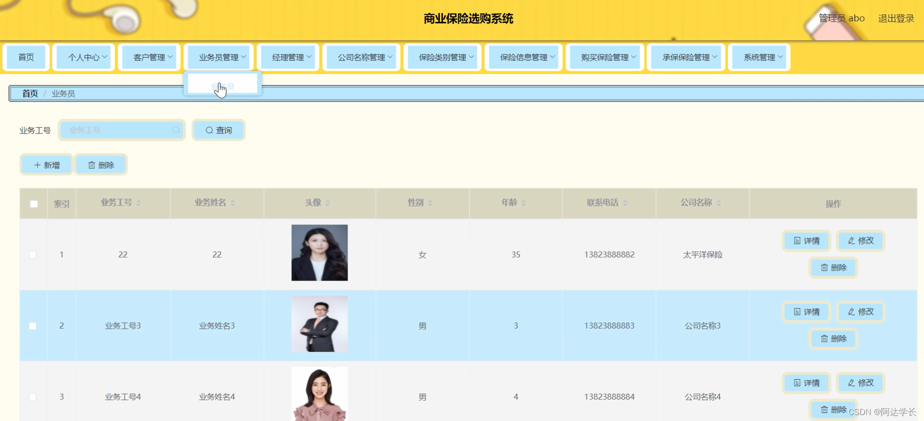 这是一个基于Springboot、Mybatis和Vue的商业保险选购系统毕设项目,包括Java、Maven和MySQL等技术。项目环境配置为Jdk1.8、Tomcat8.5及IDEA,采用B/S架构。用户可通过管理员账号(abo/abo)登录。数据库配置在application.yml中,运行SpringbootSchemaApplication.java启动项目。前端使用Vue、jQuery、easyUI和highcharts实现交互和图表展示。