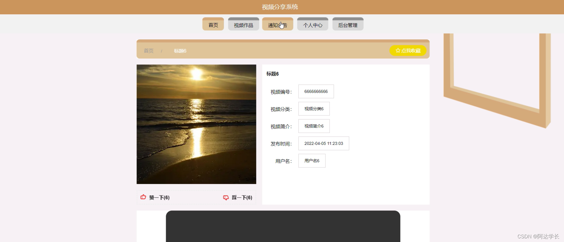 Springboot毕设项目视频分享系统s4ktmjava+VUE+Mybatis+Maven+Mysql+sprnig)