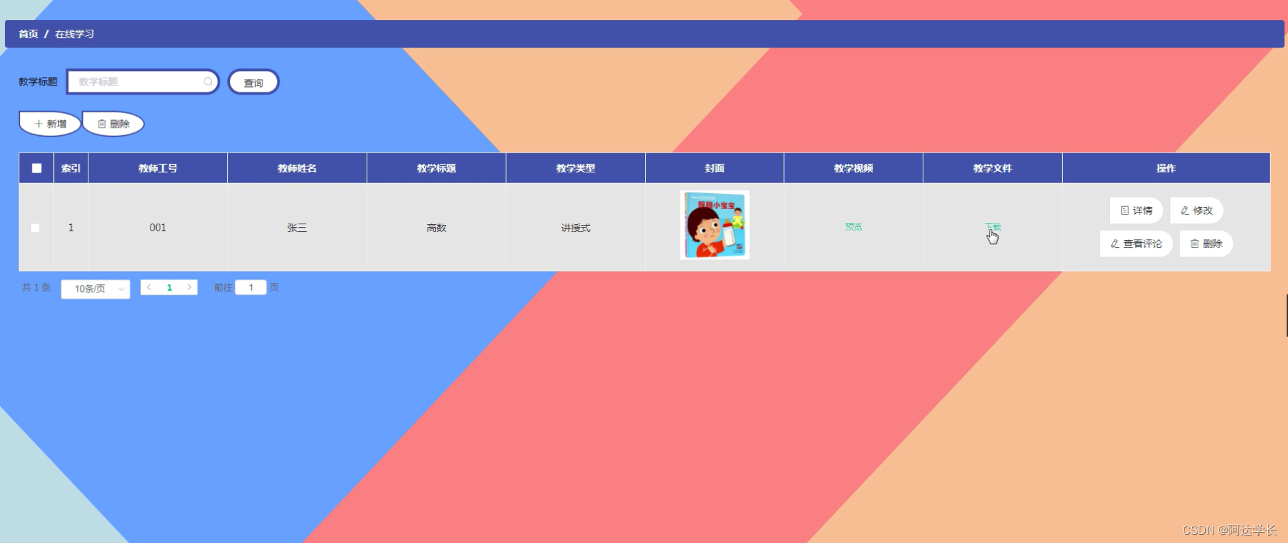 Springboot毕设项目数据库课程资源平台1jvpijava+VUE+Mybatis+Maven+Mysql+sprnig)