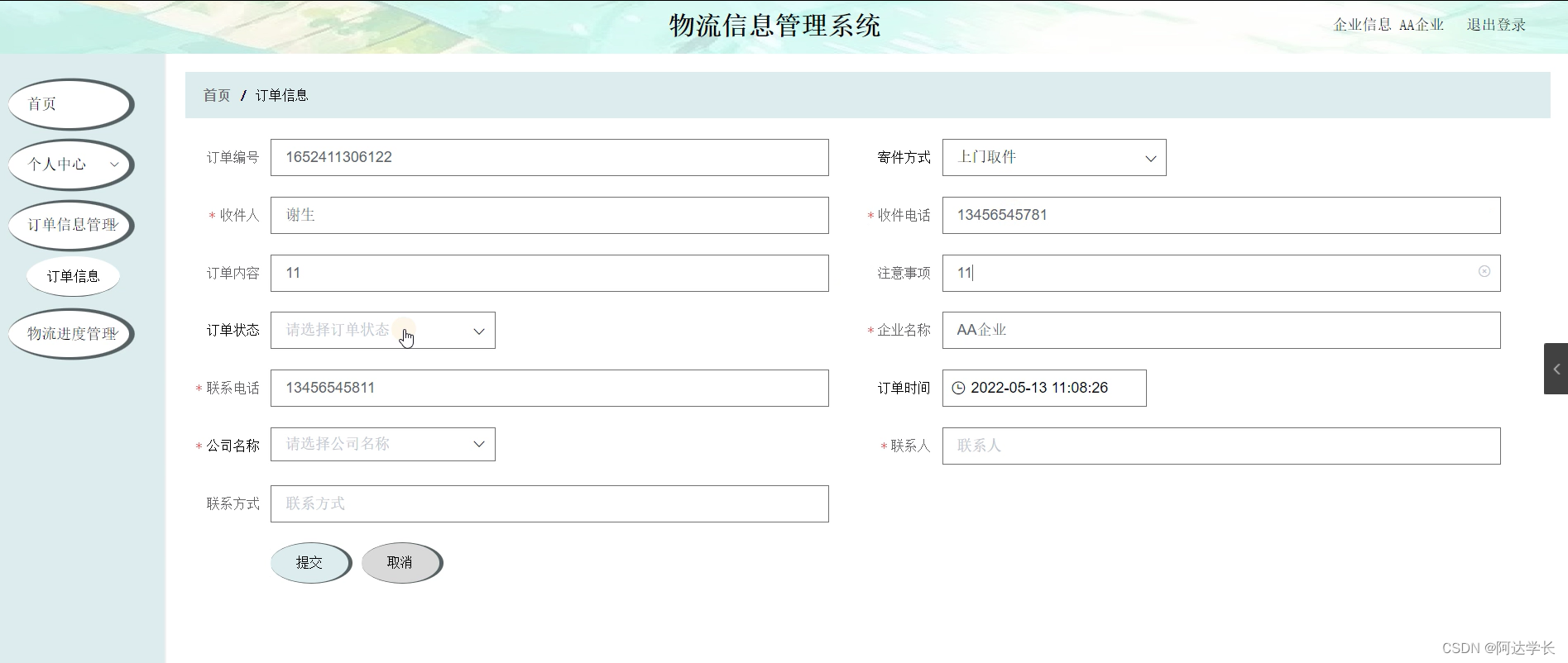 Springboot毕设项目物流信息管理系统 80vf2java+VUE+Mybatis+Maven+Mysql+sprnig)