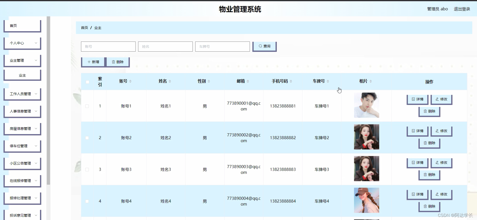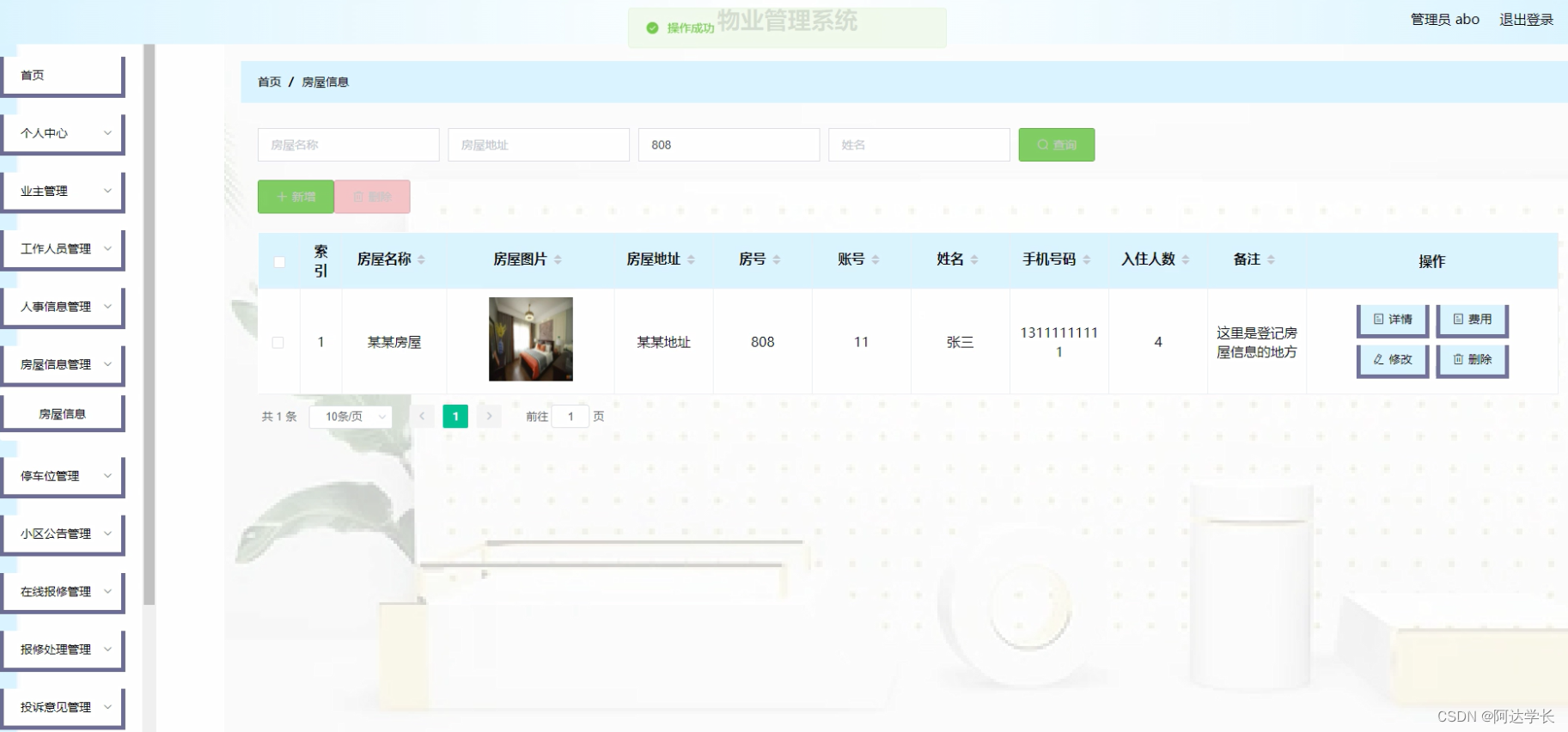 本项目为Springboot技术栈开发的物业管理系统,采用java+VUE+Mybatis+Maven+Mysql实现,支持B/S模式及Maven管理。提供管理员账号进行系统管理。