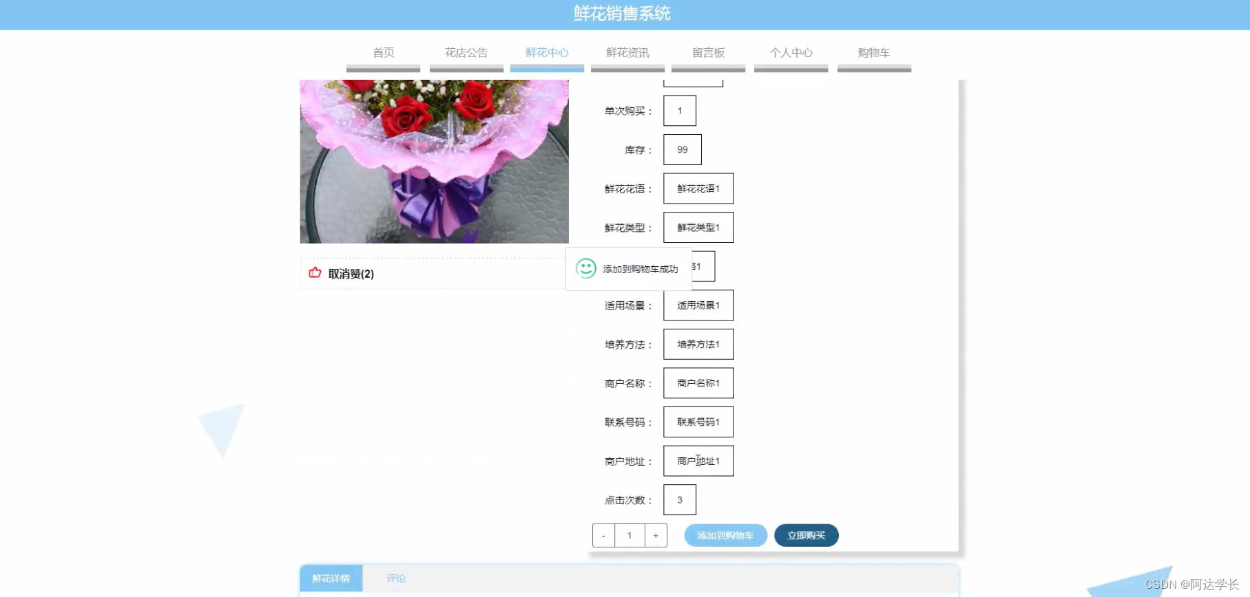 本项目为Springboot毕设鲜花销售系统,采用java+VUE+Mybatis+Maven+Mysql技术栈。环境配置包括Jdk1.8+Tomcat8.5+HBuilderX等。系统基于B/S模式+maven管理,前端使用Vue,后端使用Springboot+mybatis。