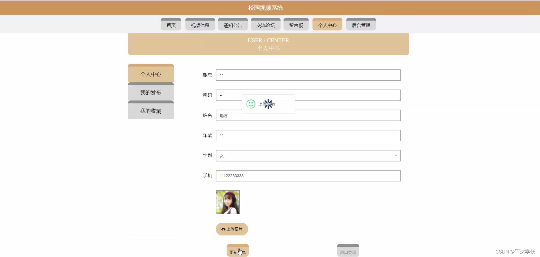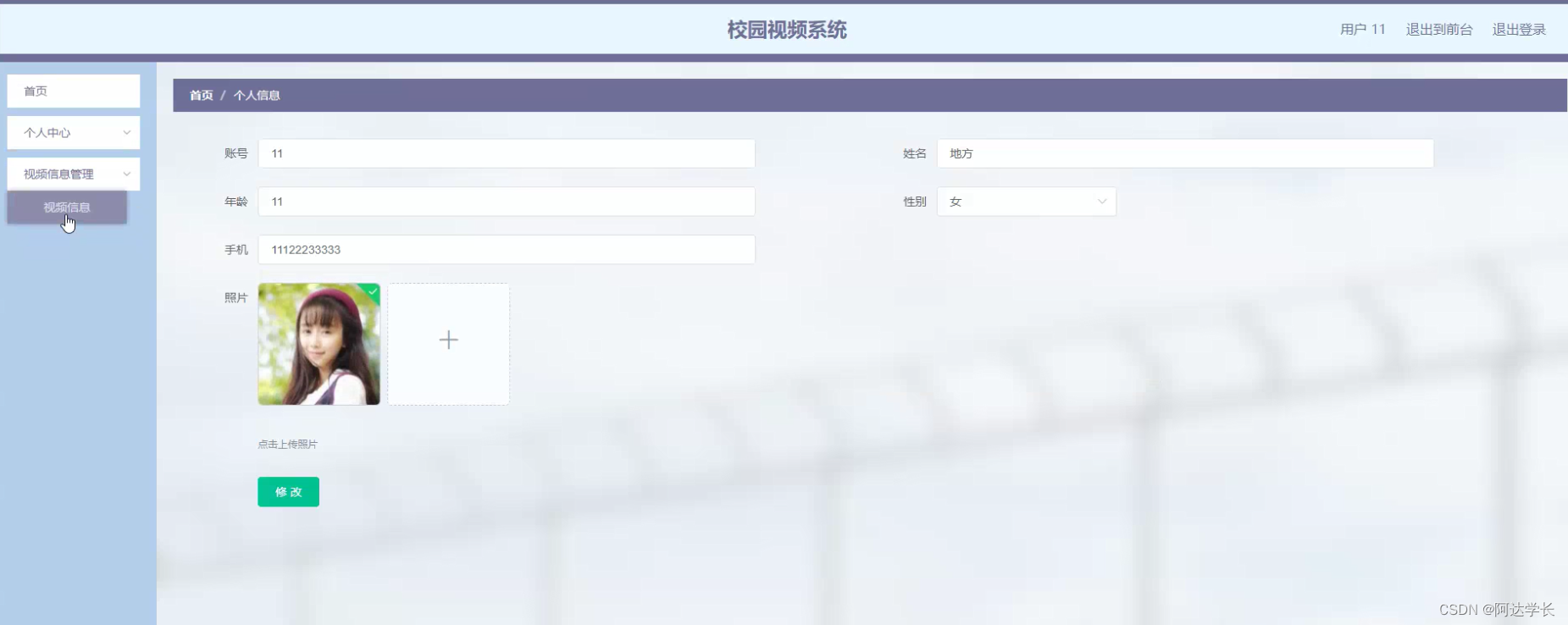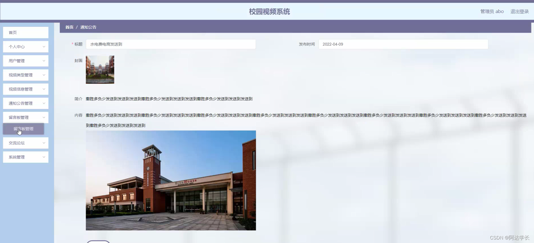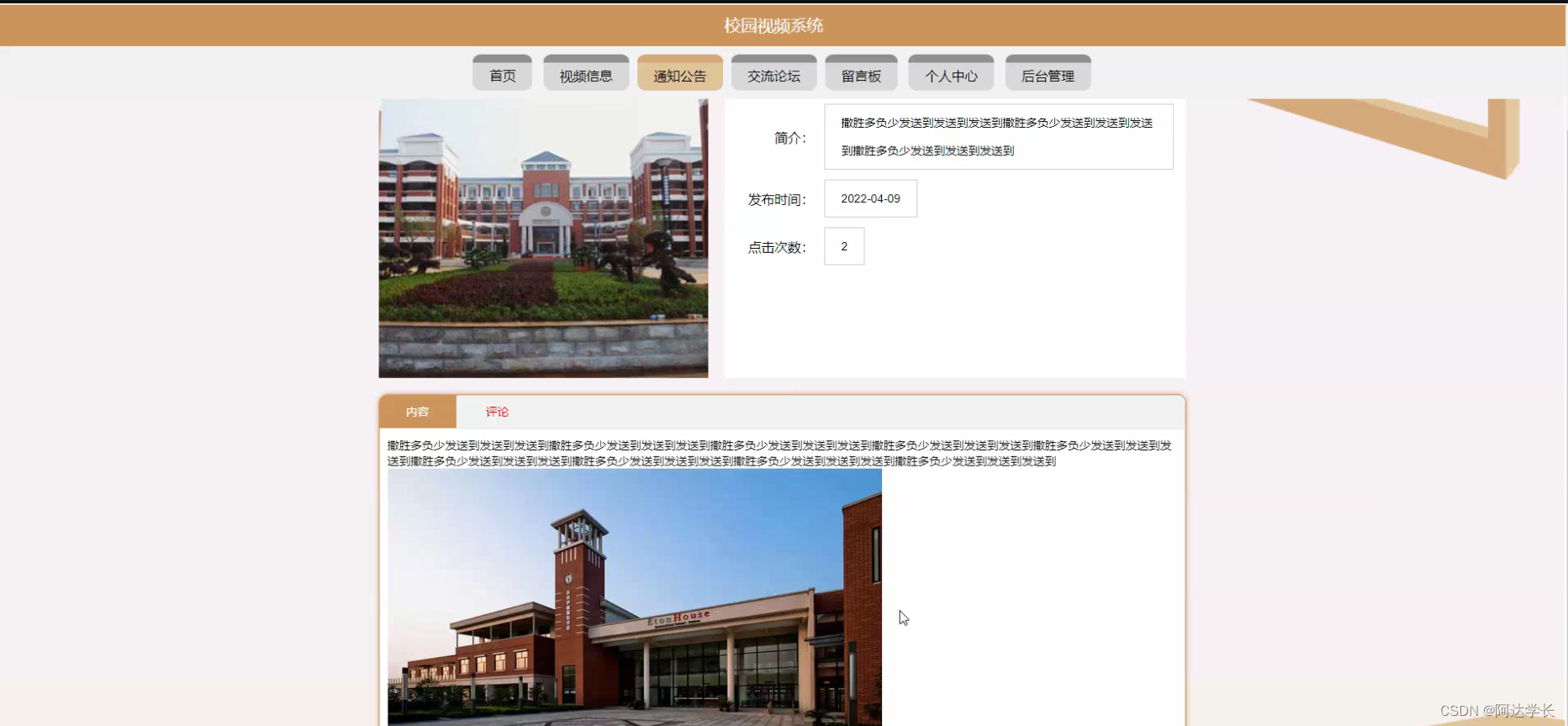 Springboot毕设项目校园视频系统7cq27java+VUE+Mybatis+Maven+Mysql+sprnig)