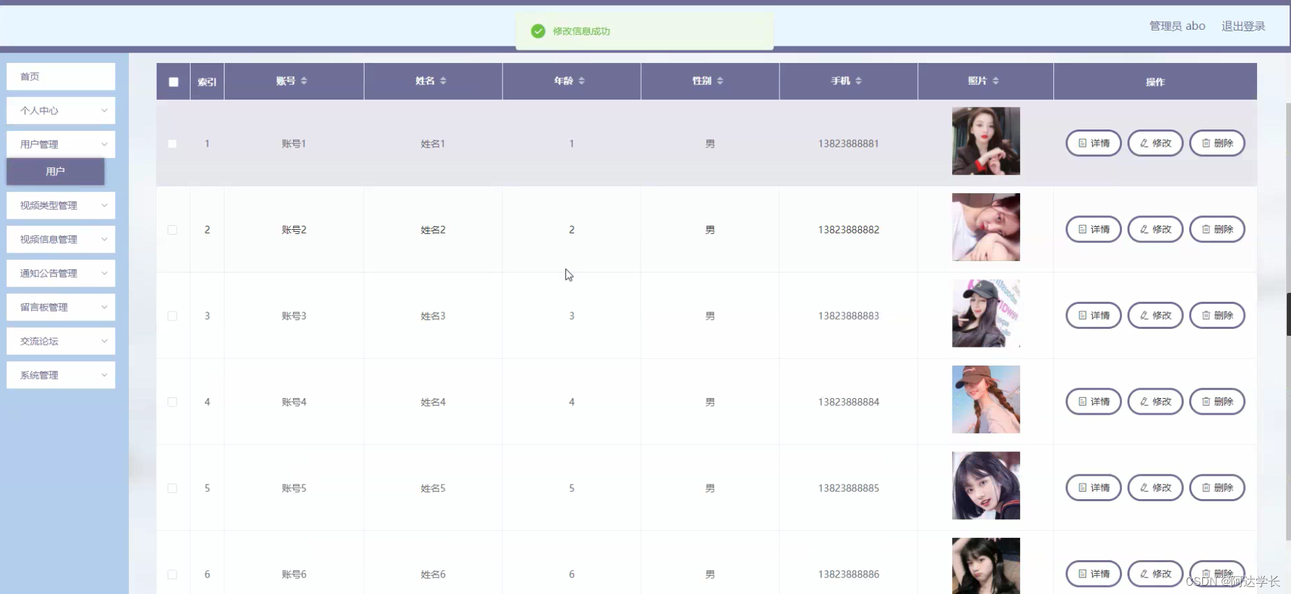 本项目采用SpringBoot+MyBatis+Vue等技术栈,实现了一套完整的校园视频管理系统。环境配置包括JDK1.8、Tomcat8.5等,支持多种IDE如IDEA、Eclipse等。系统提供管理员账号进行登录测试。
