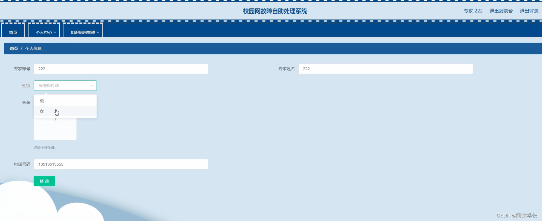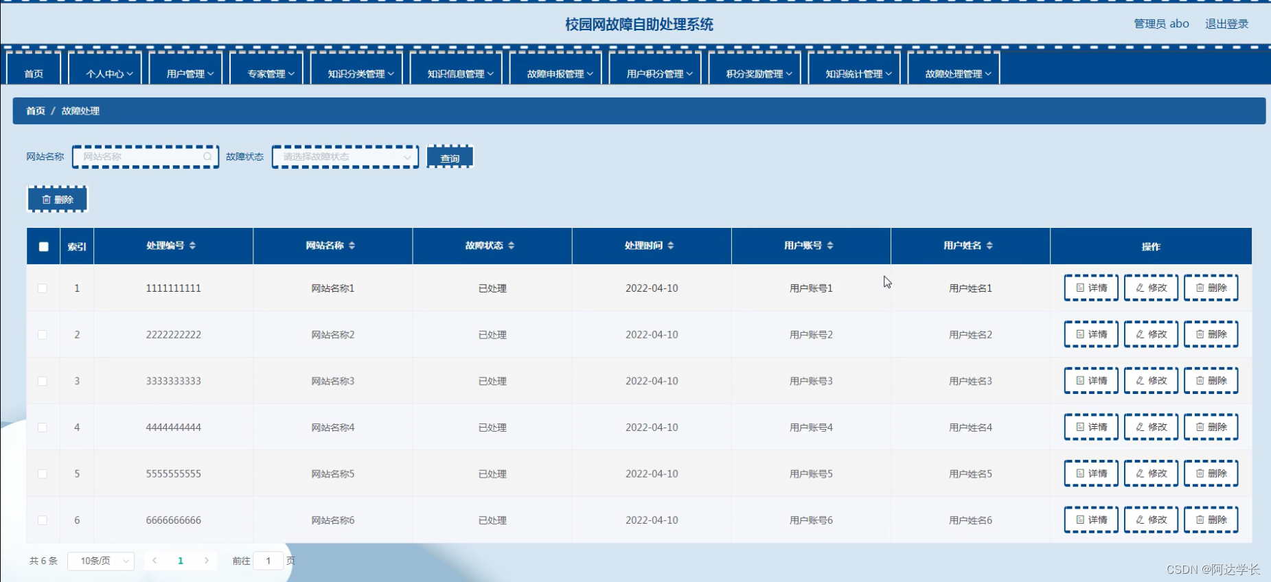 Springboot毕设项目校园网故障自助处理系统 6d02wjava+VUE+Mybatis+Maven+Mysql+sprnig)