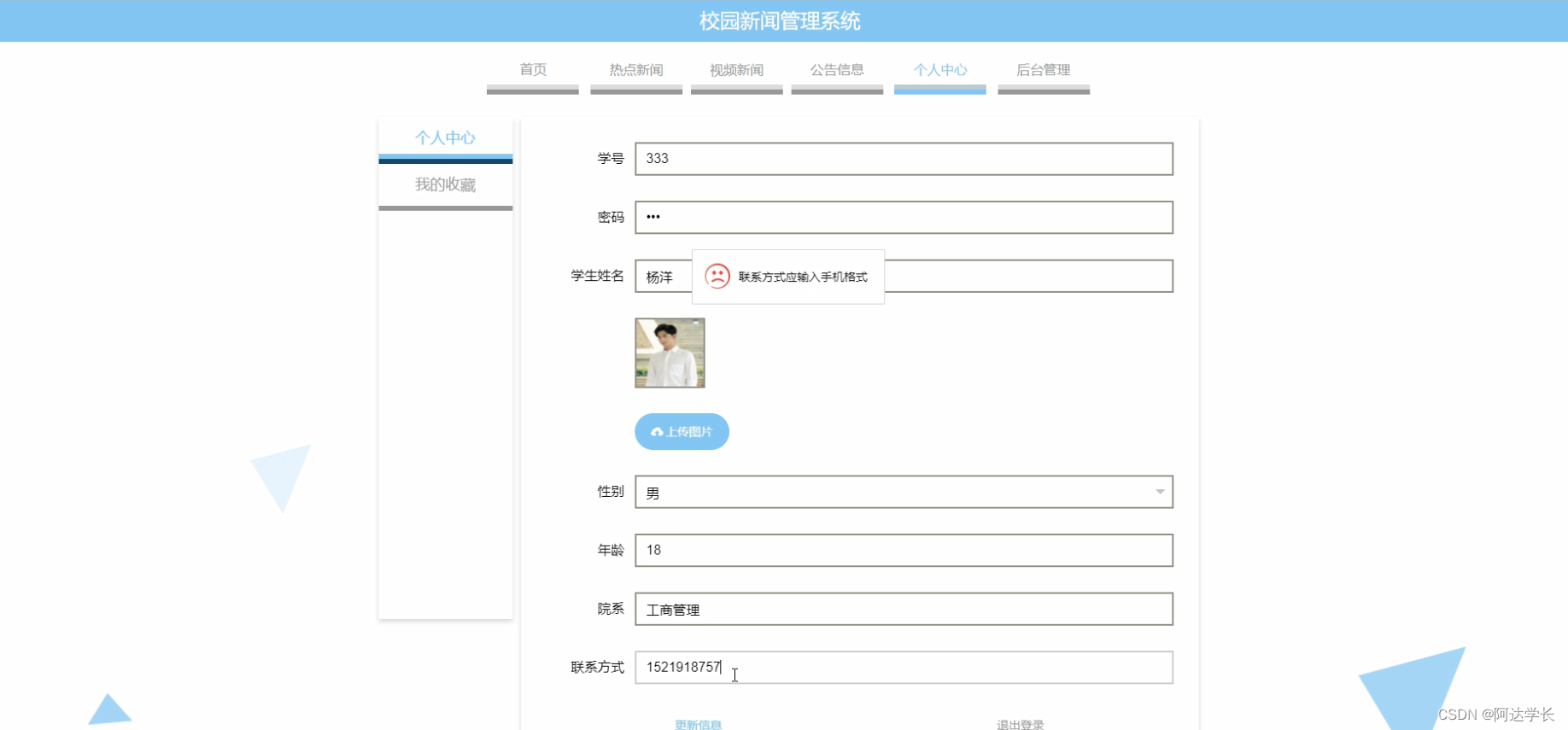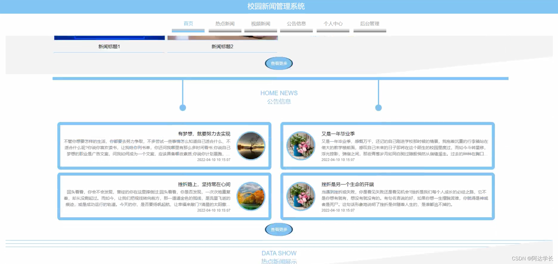 Springboot毕设项目校园新闻管理系统sj937java+VUE+Mybatis+Maven+Mysql+sprnig)