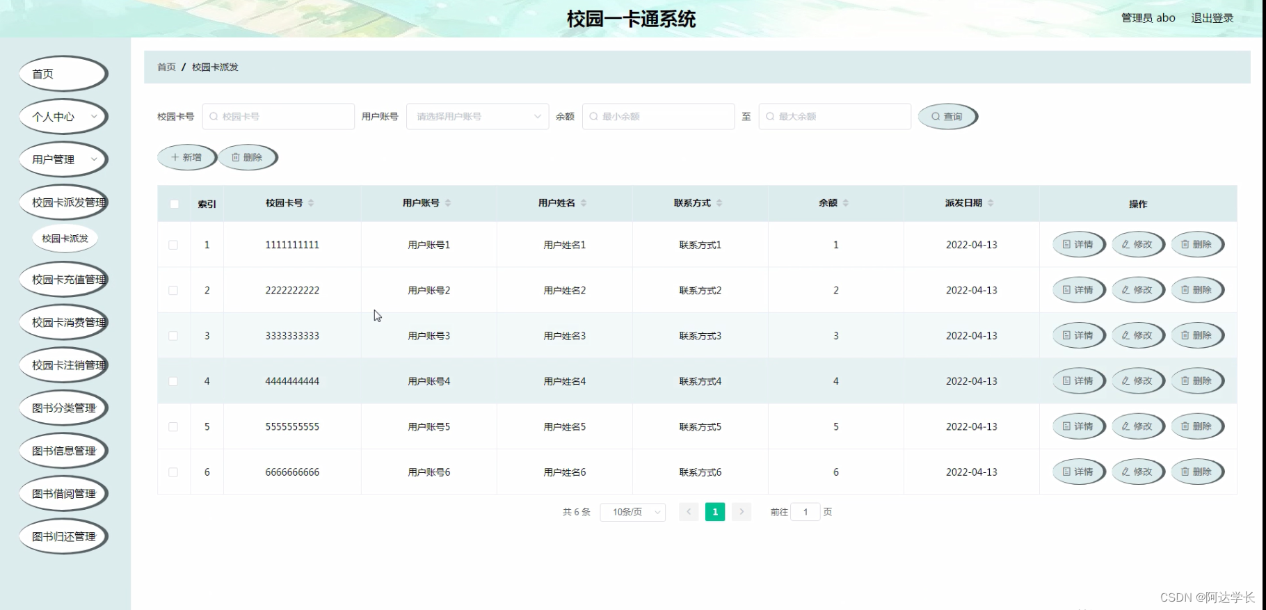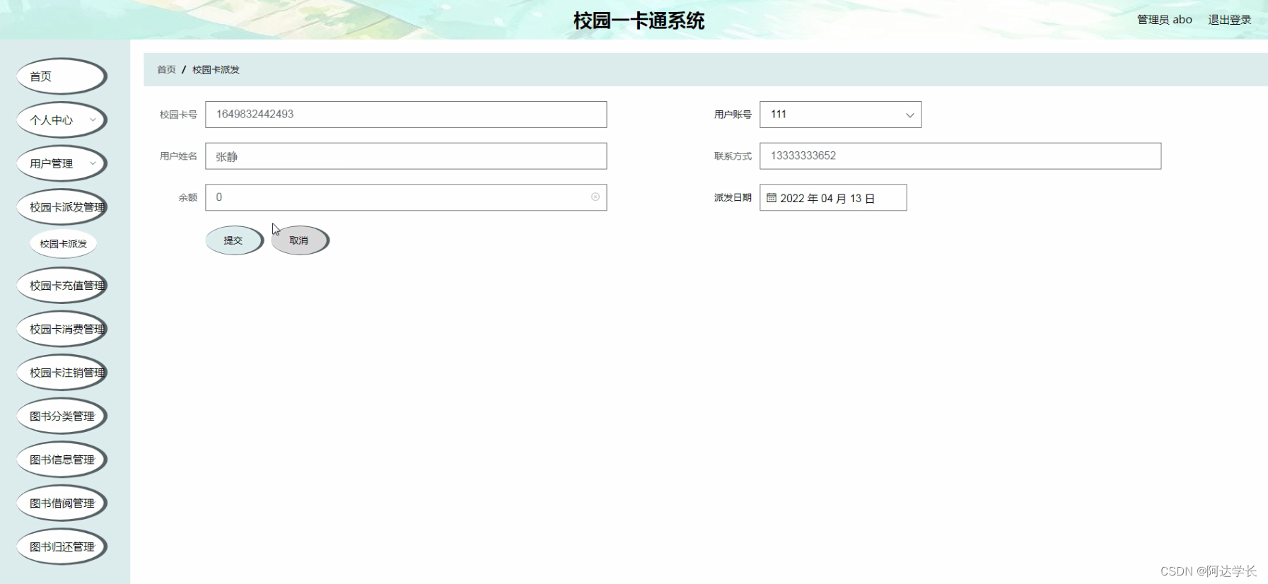 Springboot毕设项目校园一卡通系统5nxt5java+VUE+Mybatis+Maven+Mysql+sprnig)