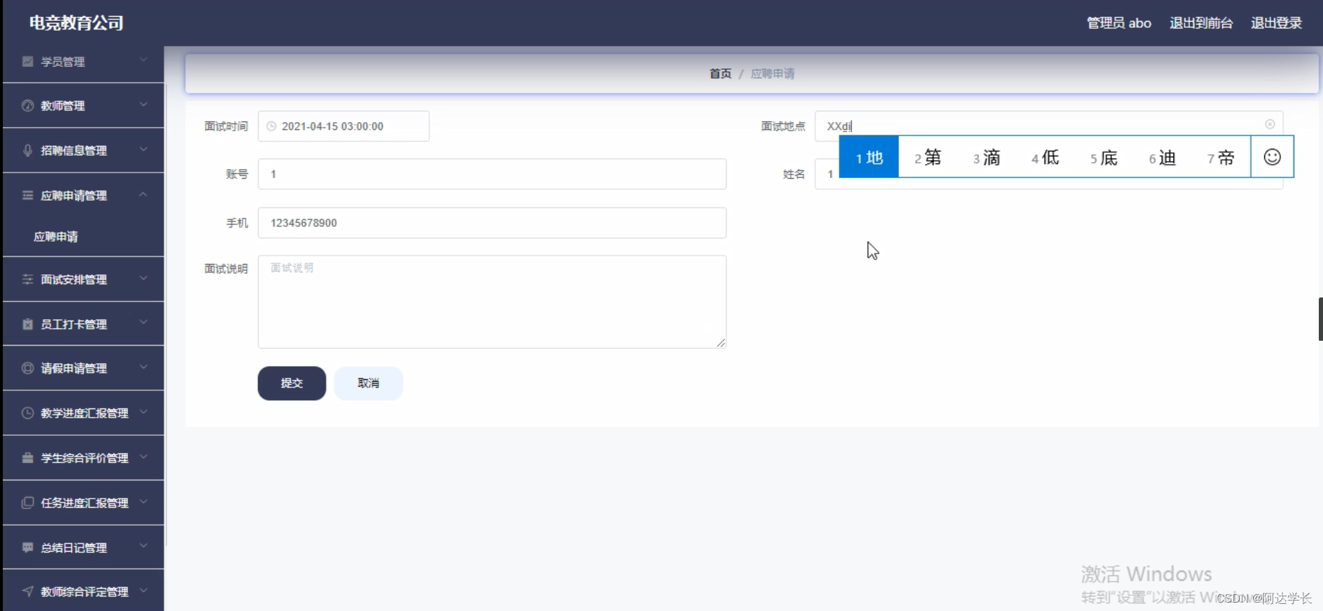 本项目采用Java、Mybatis、Maven及Vue等技术构建了一个电竞教育公司的业务系统,支持前后端分离部署,数据库采用MySQL。系统提供了管理员登录功能,账号密码均为'abo',通过SpringbootSchemaApplication启动。