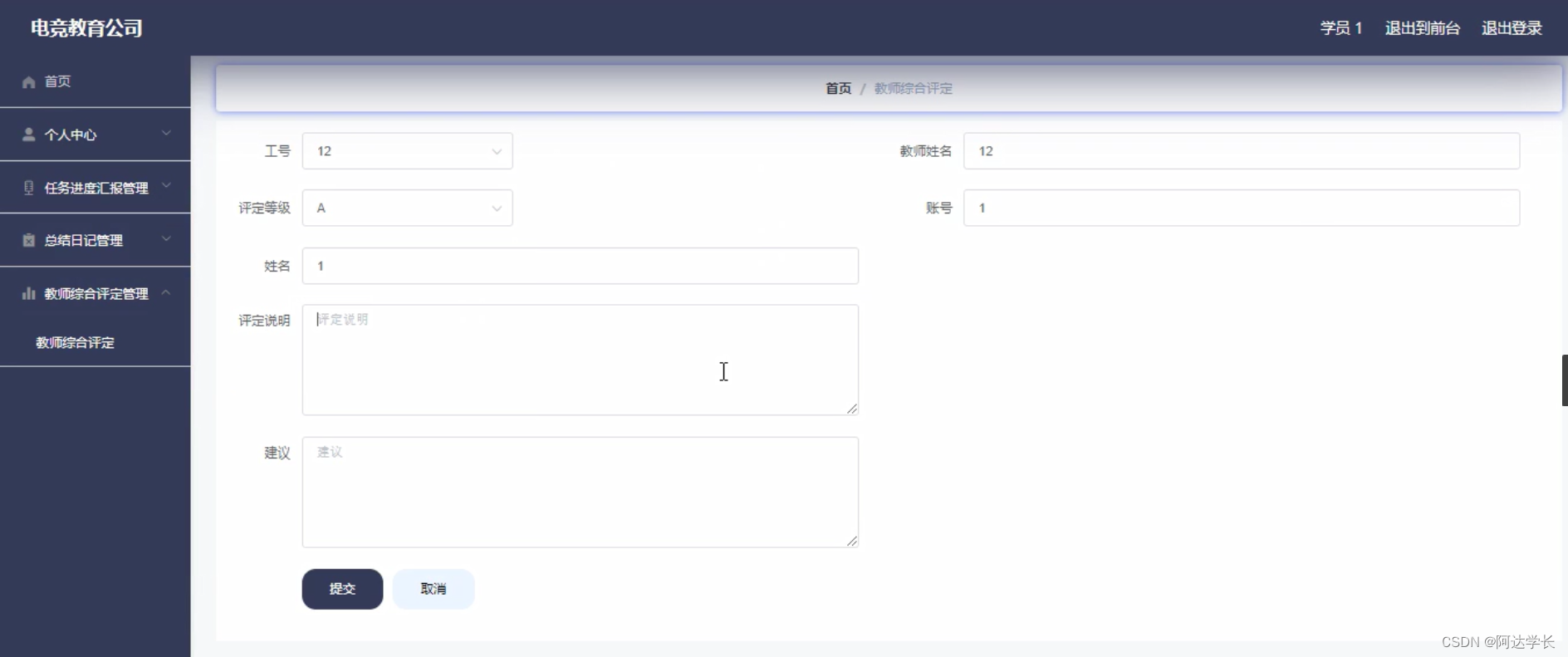Java毕设项目电竞教育公司(java+VUE+Mybatis+Maven+Mysql)