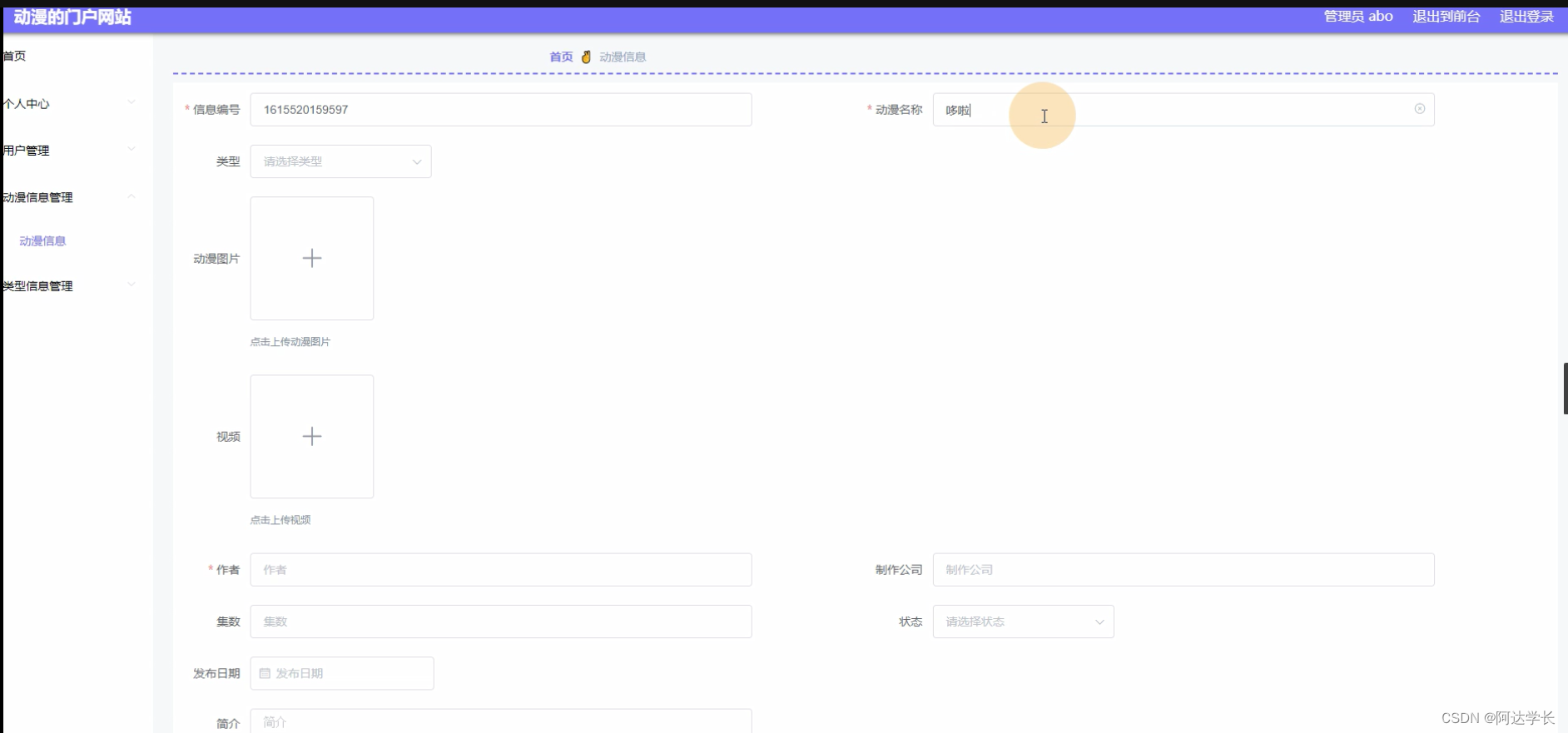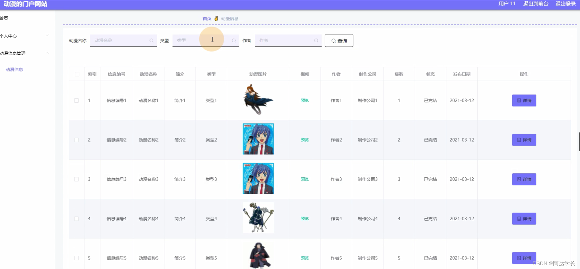 Java毕设项目动漫的门户网站(java+VUE+Mybatis+Maven+Mysql)