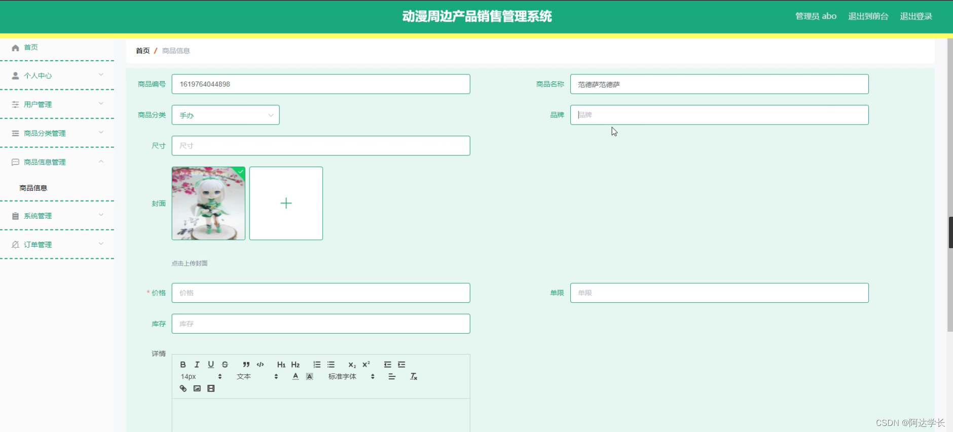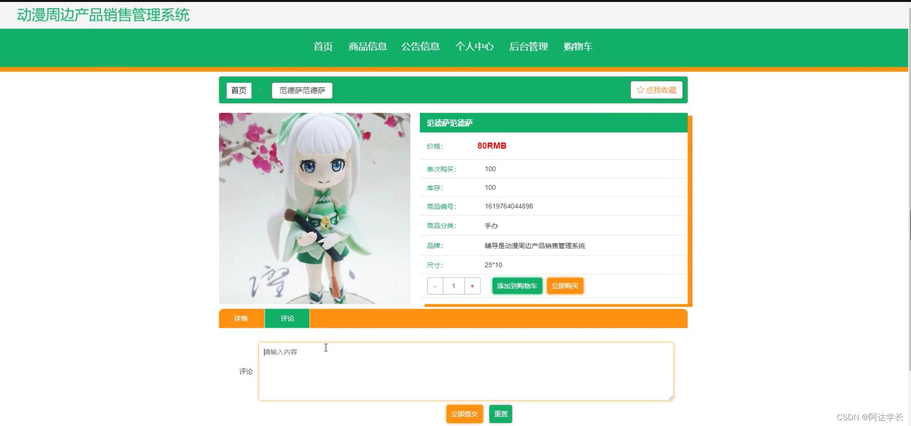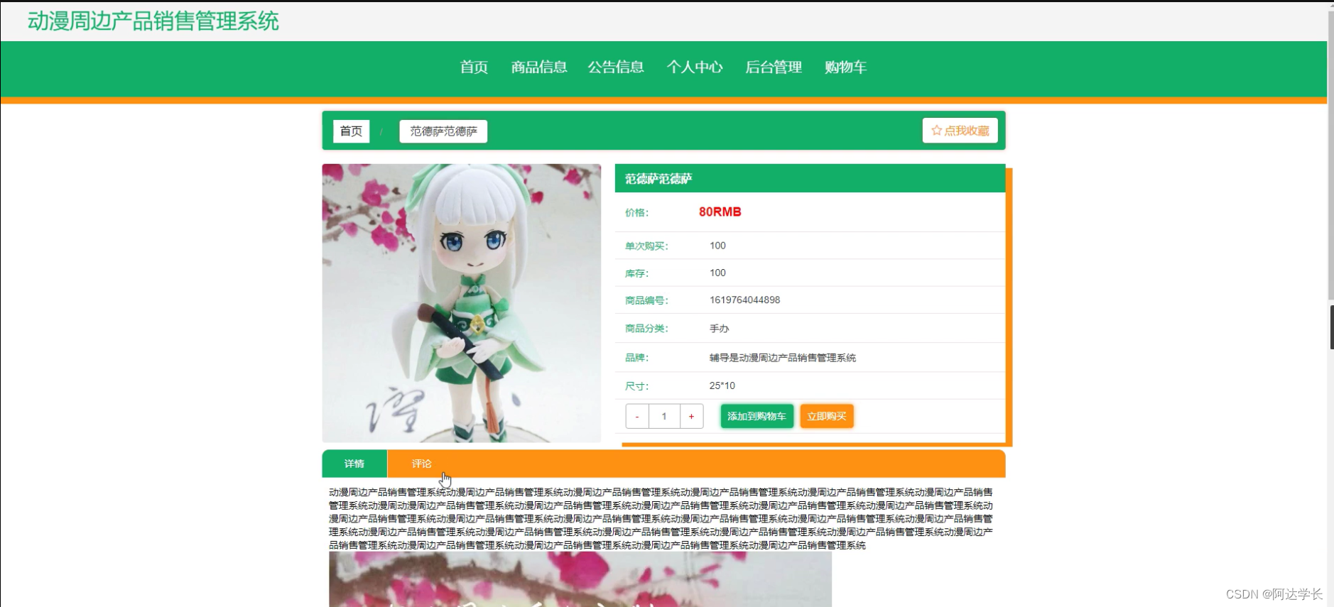 Java毕设项目动漫周边产品销售管理系统(java+VUE+Mybatis+Maven+Mysql)