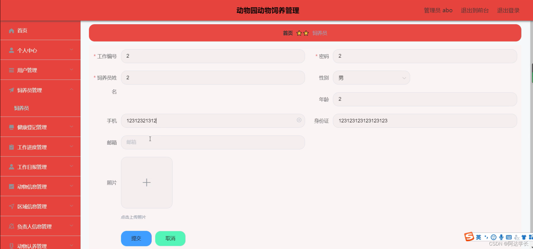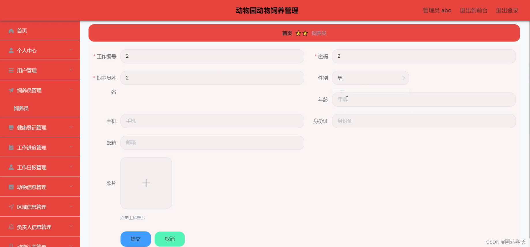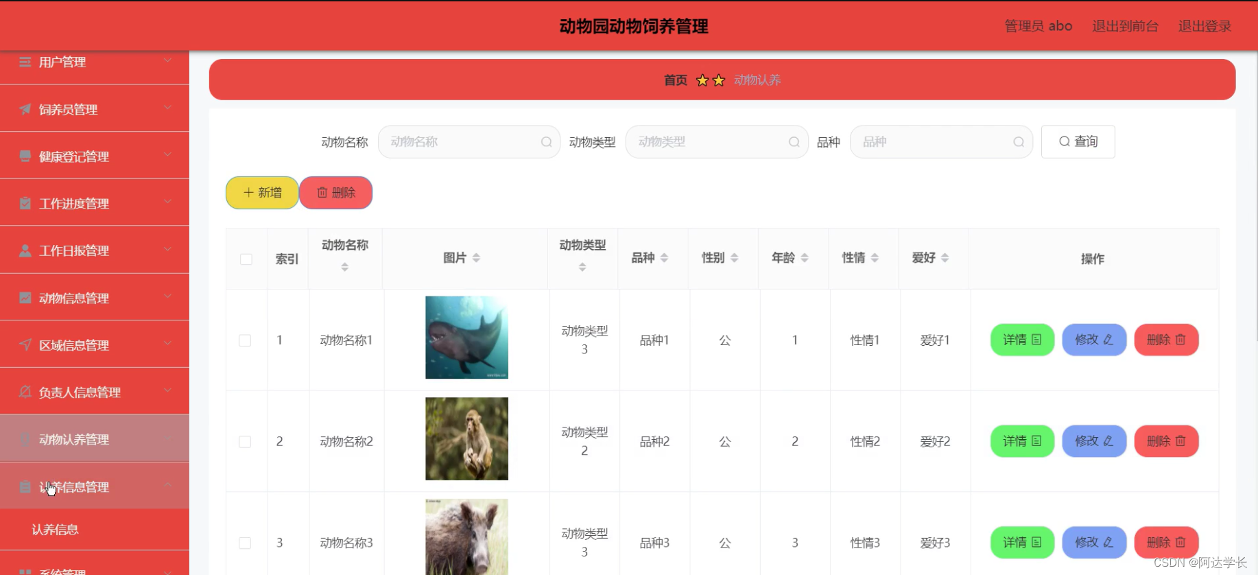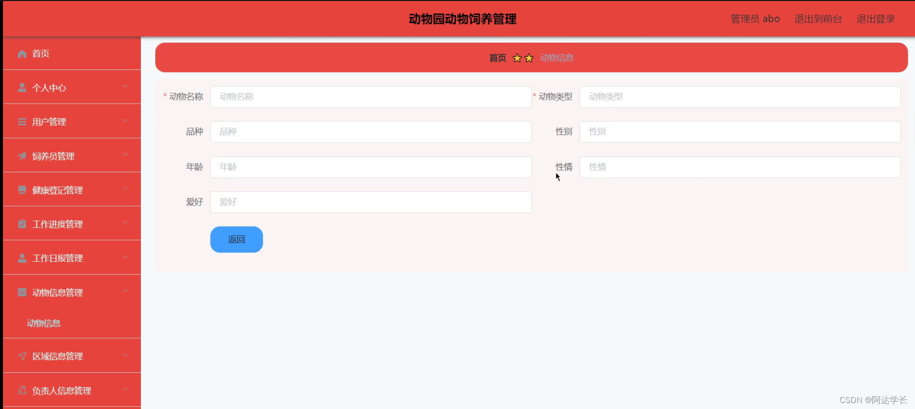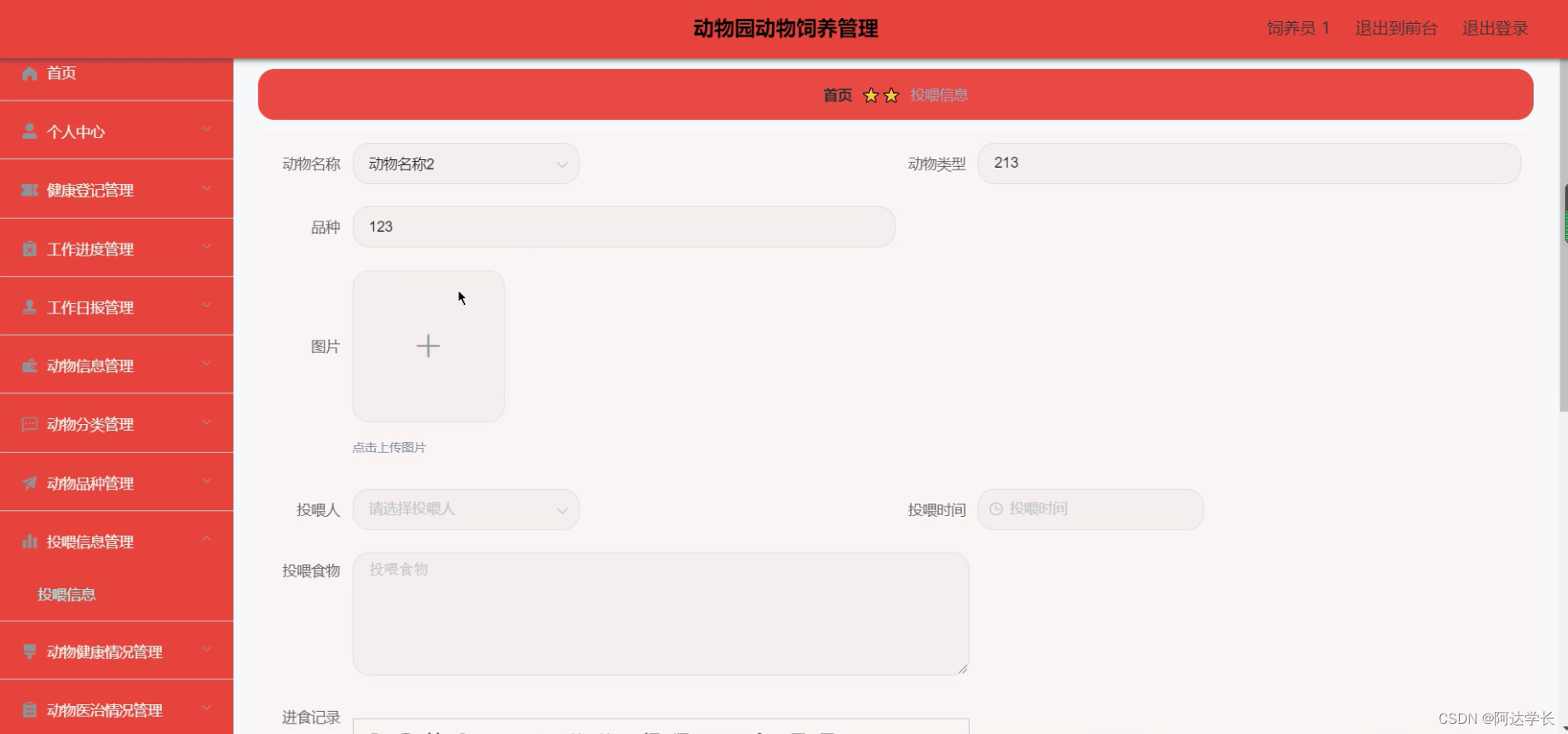 Java毕设项目动物园动物饲养管理(java+VUE+Mybatis+Maven+Mysql)