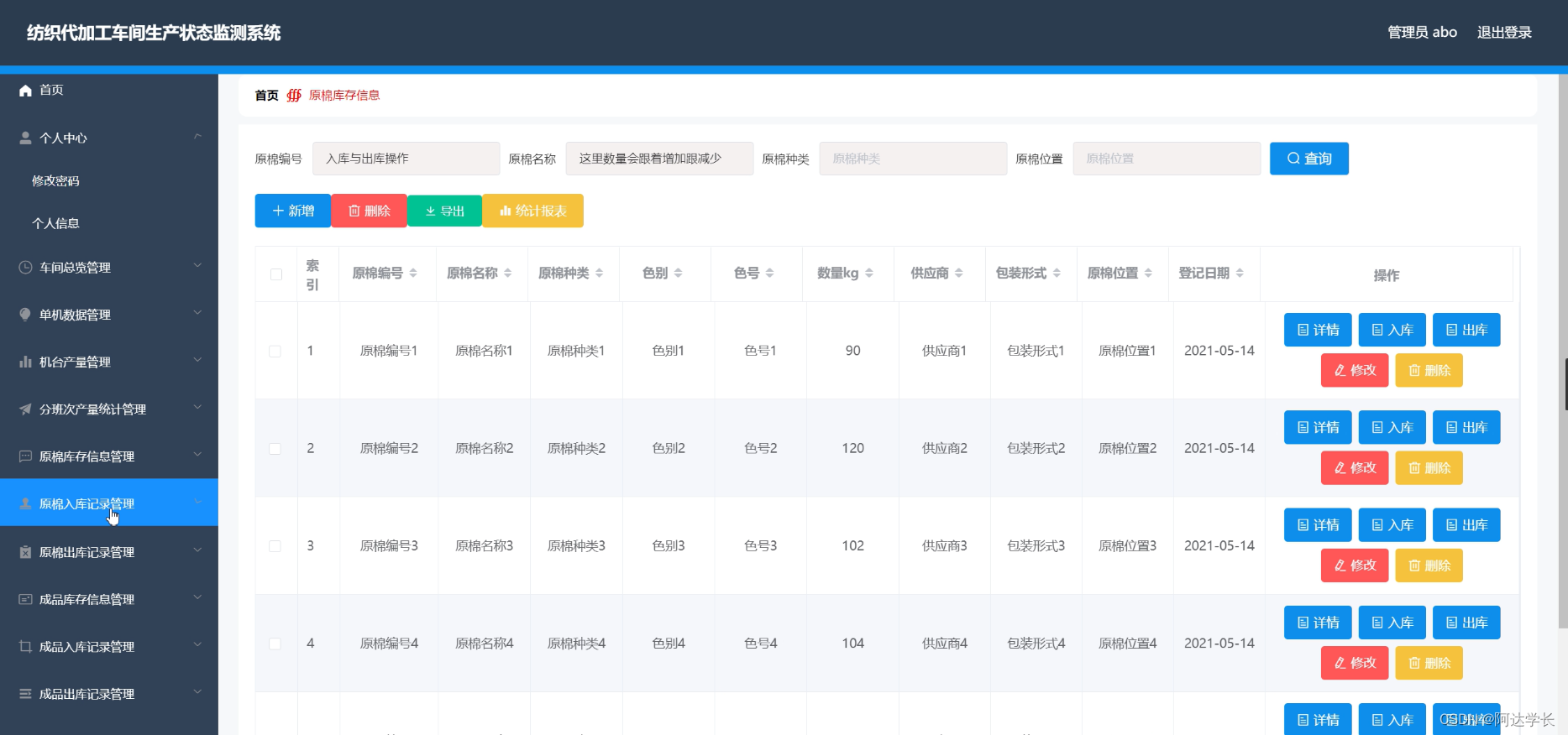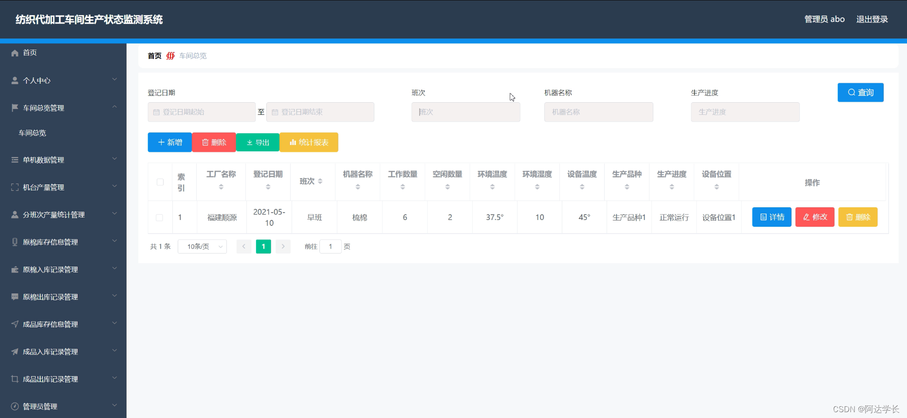 Java毕设项目纺织代加工车间生产状态监测系统(java+VUE+Mybatis+Maven+Mysql)