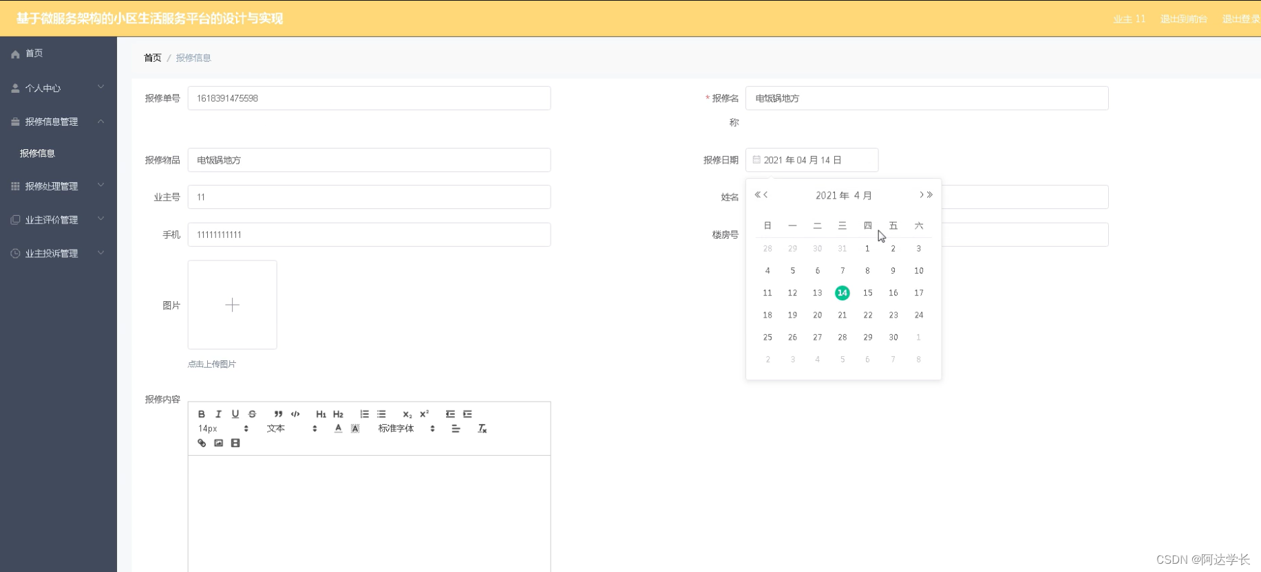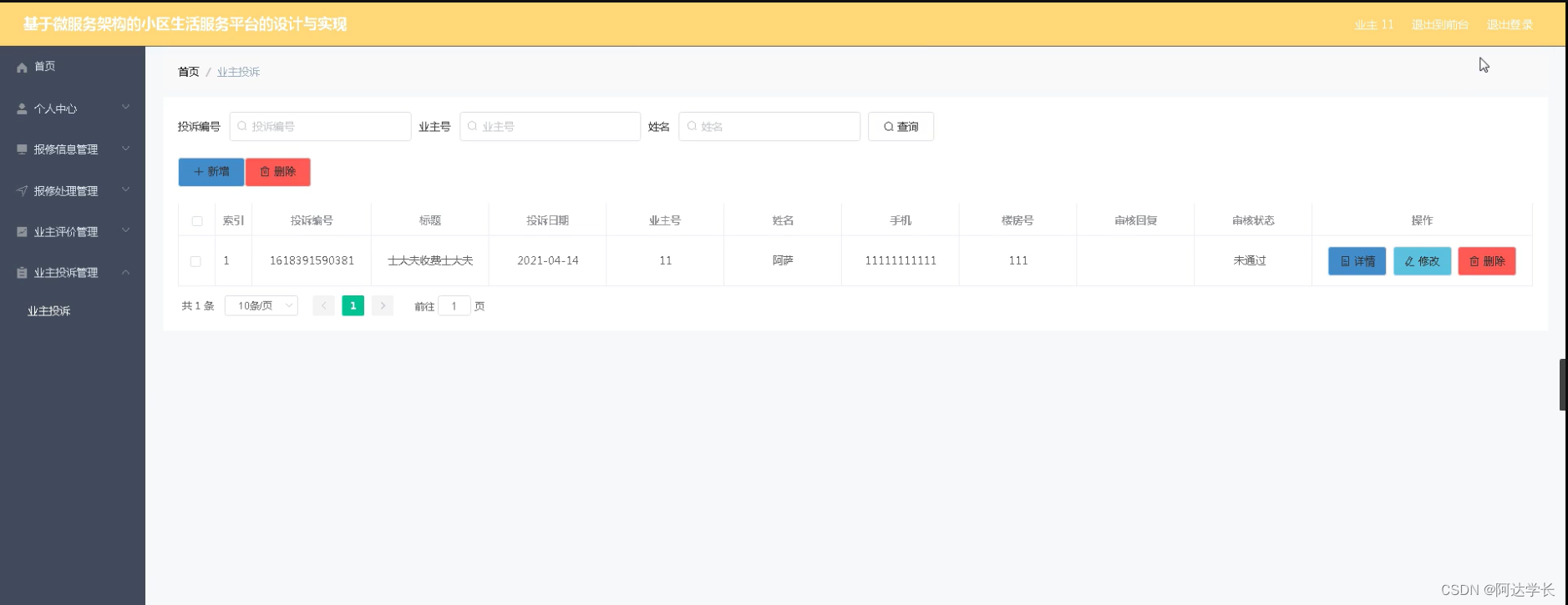Java毕设项目小区生活服务平台的设计与实现(java+VUE+Mybatis+Maven+Mysql)
