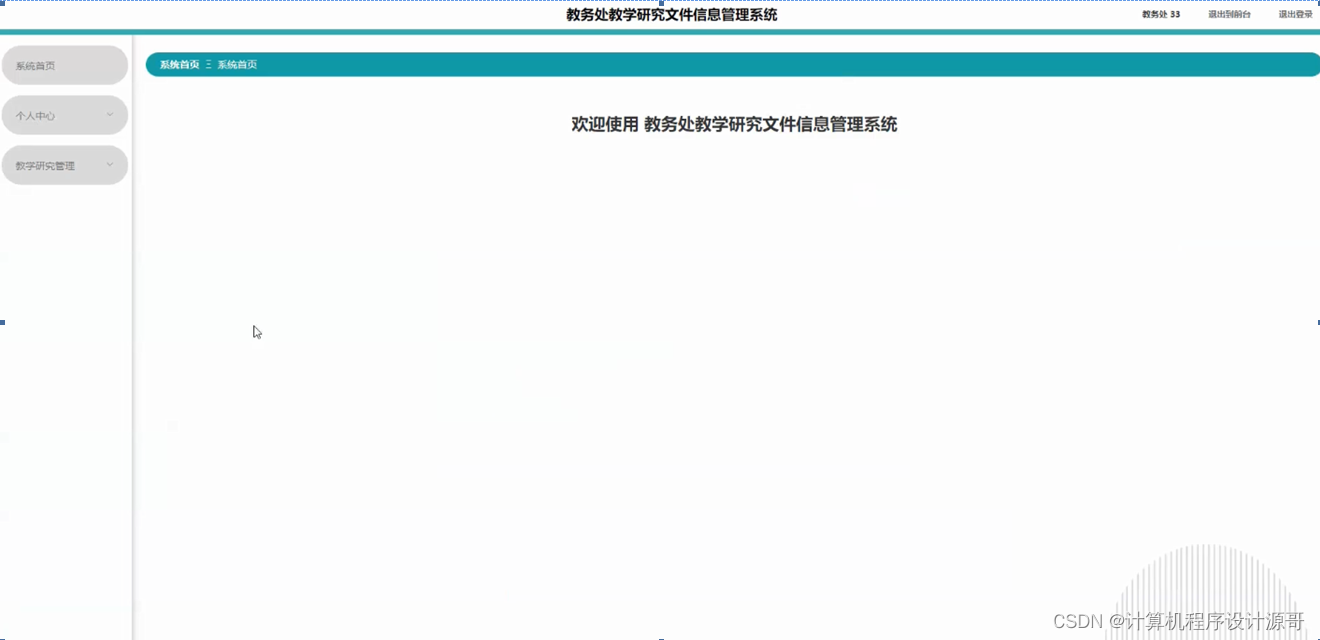 教务处登录系统后,可以对系统首页、个人中心、教学研究管理等功能进行相应操作,如图5-8所示。