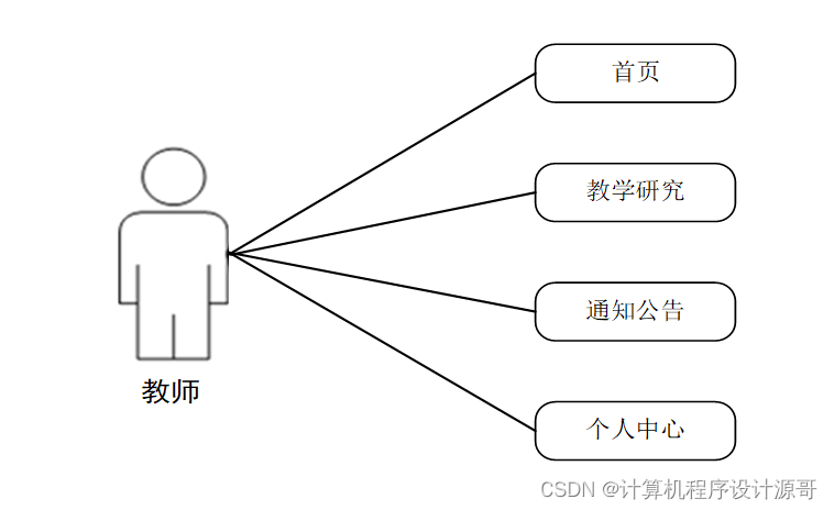 教师的功能主要是对个人账号和密码进行更新管理,然后对首页、教学研究、通知公告、个人中心进行查询详情操作。