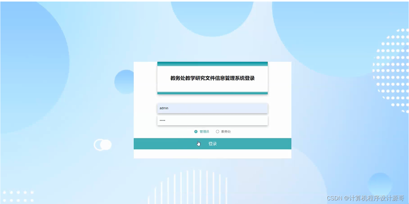 教务处登录,教务处通过登录页面输入信息完成后,并点击登录操作,如图5-7所示。