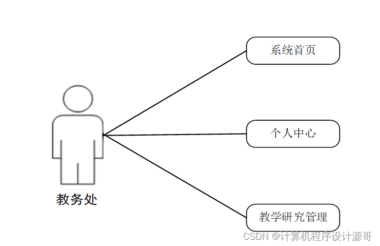 教务处的功能主要是对个人账号和密码进行信息更新,然后对系统首页、个人中心、教学研究管理进行查询详情操作。