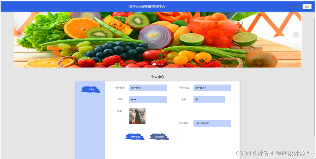 个人中心:在个人中心页面通过填写个人详细信息进行信息更新;如图5-5所示: