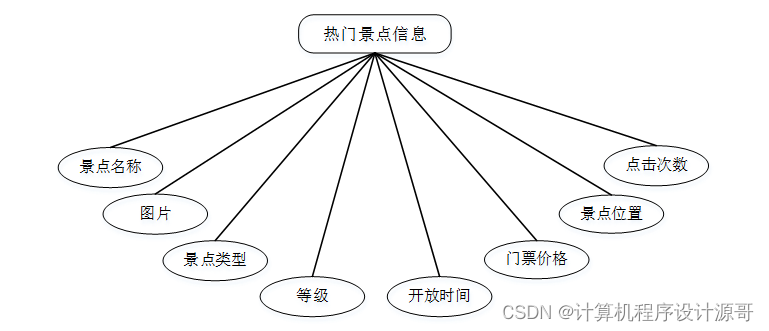 管理员点击热门景点管理:在热门景点管理页面,可以对景点名称、图片、景点类型、等级、开放时间、门票价格、景点位置、点击次数等信息,进行查询或者新增、删除热门景点等操作,如图5-10所示: