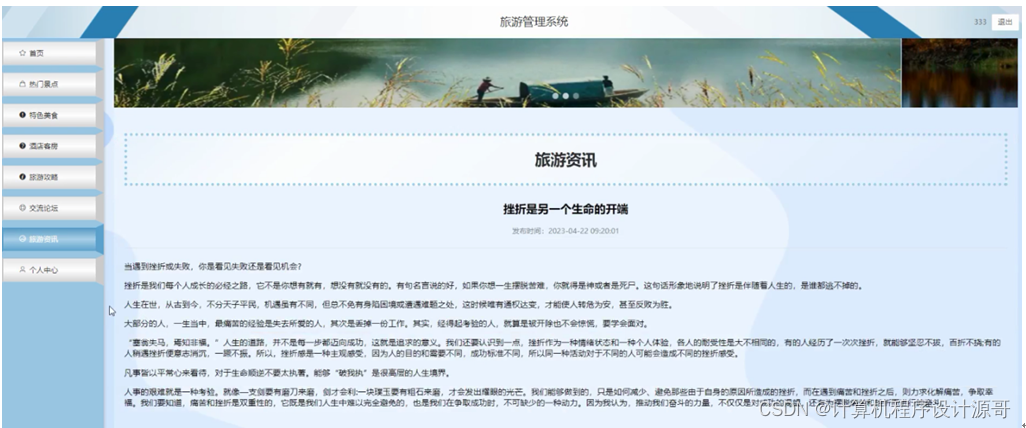 用户点击旅游资讯,在旅游资讯页面的搜索栏输入标题进行查询,然后可以查看标题、内容、发布时间等信息,如图5-5所示: