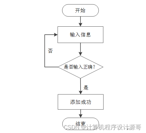 用户可以添加自己权限内的信息,管理员可以添加信息,内容没有问题之后按下确定键就添加成功了。添加信息流程图如图3-4所示.
