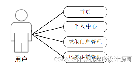 (4) 用户可以对首页,个人中心,求租信息管理,房屋租赁管理进行操作,用例分析如图3-4所示。