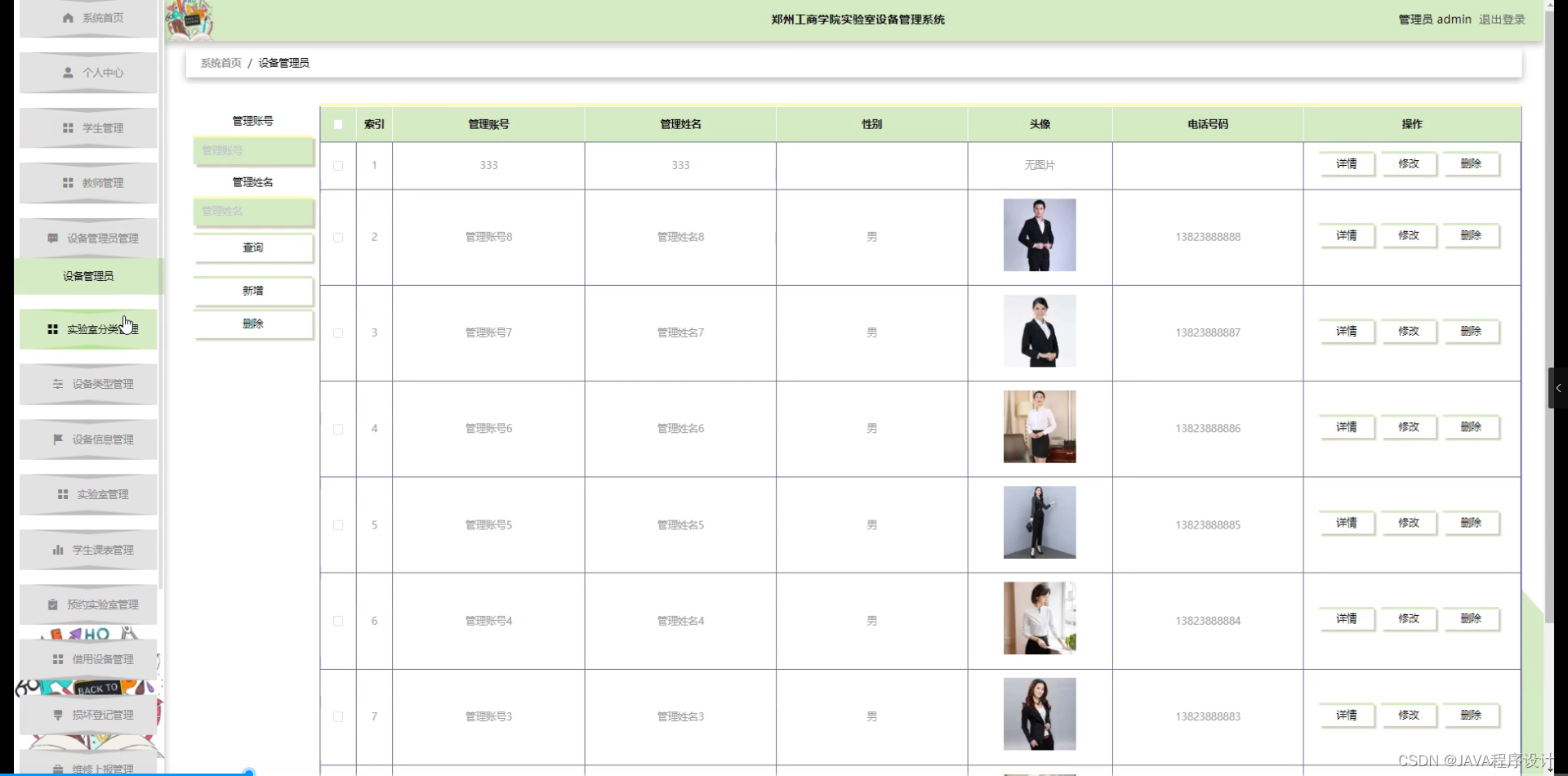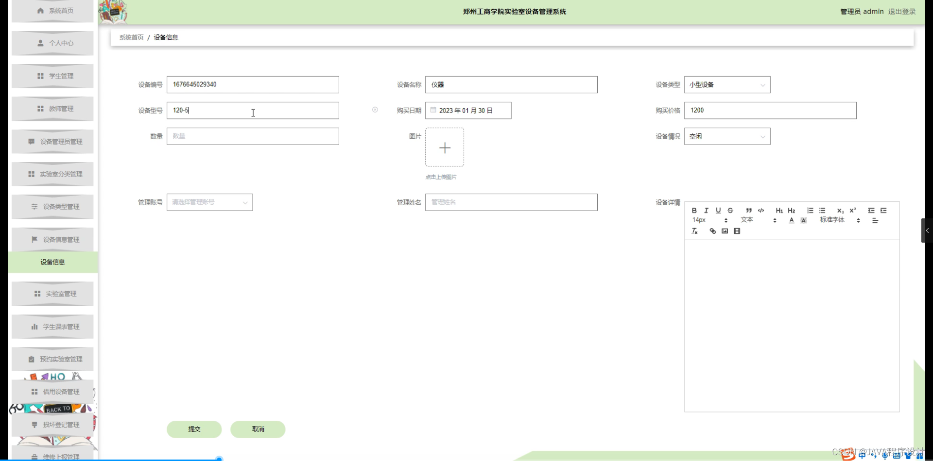 随着科技的不断发展,实验室设备管理已经成为高校、研究机构等单位不可或缺的一部分。实验室设备管理系统是一个用于管理实验室设备的软件系统,它能够帮助实验室管理人员对实验室设备进行有效的管理和维护。在郑州工商学院中,实验室设备数量众多,种类繁多,传统的手工管理方式已经无法满足实验室设备管理的需求。因此,开发一个高效、便捷的实验室设备管理系统显得尤为重要。本毕业设计题目旨在通过使用前端技术(HTML+CSS+JavaScript+Vue)和后端技术(Python+Flask)以及MySQL数据库,为郑州工商学院开发一个实验室设备管理系统,以提高工作效率,减轻实验室管理人员的工作负担。