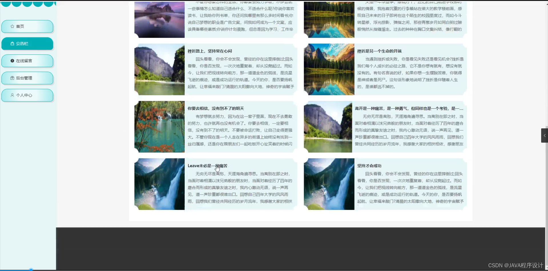 前端部分,系统继续采用Vue.js框架。Vue.js是一个渐进式的JavaScript框架,它非常适合构建动态的用户界面。Vue.js的轻量级特性、简单的上手难度以及强大的响应式数据绑定机制,使得前端开发既灵活又高效。