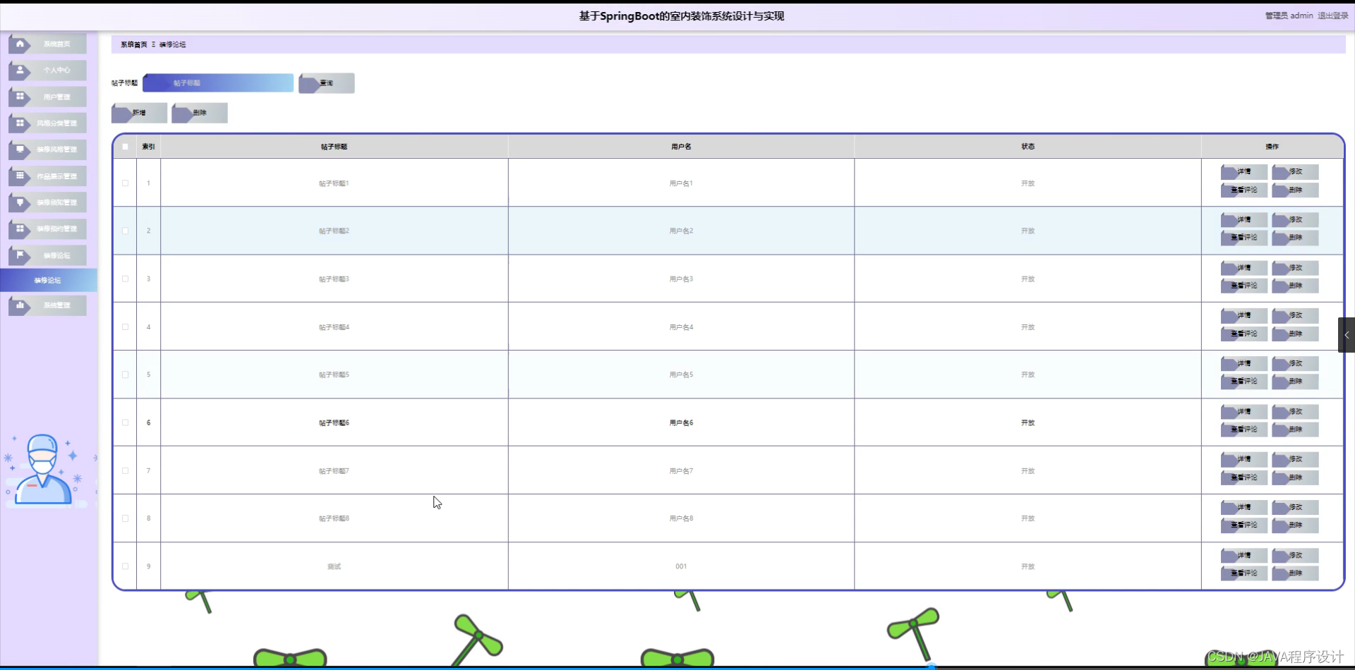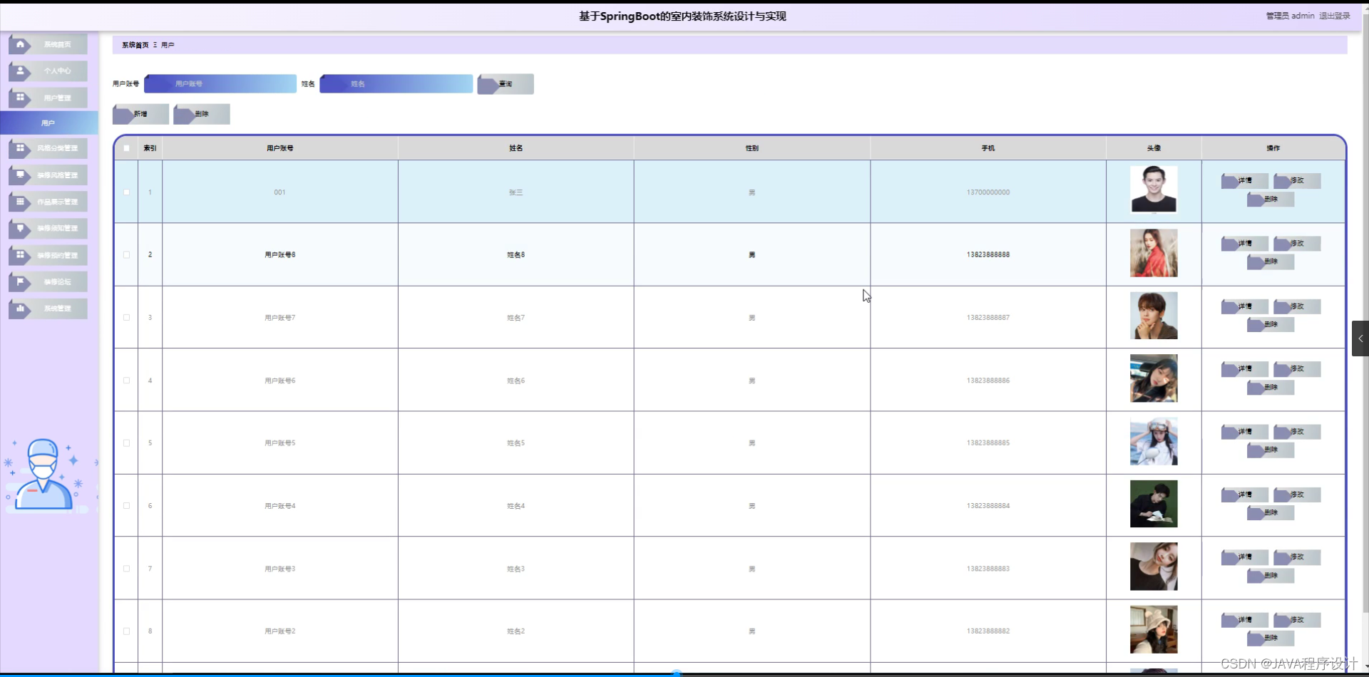 总结起来,室内装饰系统的设计与实现可以为设计师和用户提供便利和高效的设计服务,提高设计质量和效率。通过利用现代前端技术和后端技术,结合MySQL数据库,实现在线设计、预览、修改等功能,室内装饰系统能够满足用户对个性化设计的需求,促进设计师和客户之间的合作与沟通,推动室内装饰行业的发展。