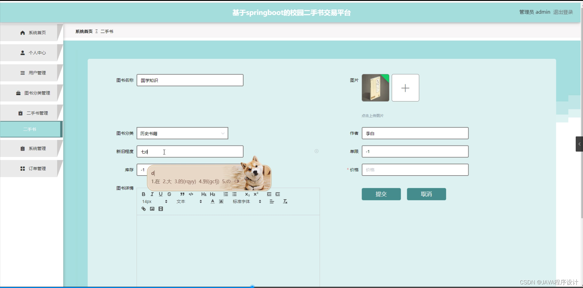 在校园中,学生们在学习过程中会产生大量的二手书籍,这些书籍往往在学期结束后被闲置或丢弃,造成了资源的极大浪费。同时,新学期的到来又需要购买大量的教材和参考书,这对于学生来说是一项不小的开支。校园二手书交易平台的开发,不仅能够为学生提供一个便捷的买卖渠道,减少书籍的浪费,还能够在一定程度上减轻学生的经济负担。此外,该平台的建立还将促进校园内的资源流动和知识共享,加强学生之间的交流与合作,营造一个良好的学习和分享氛围。从技术角度来看,采用HTML、CSS、JavaScript、Vue以及Python和Flask等技术进行开发,不仅能够锻炼学生的编程能力和项目实践经验,还能够让学生了解到前后端分离的开发模式,为未来的职业生涯打下坚实的基础。