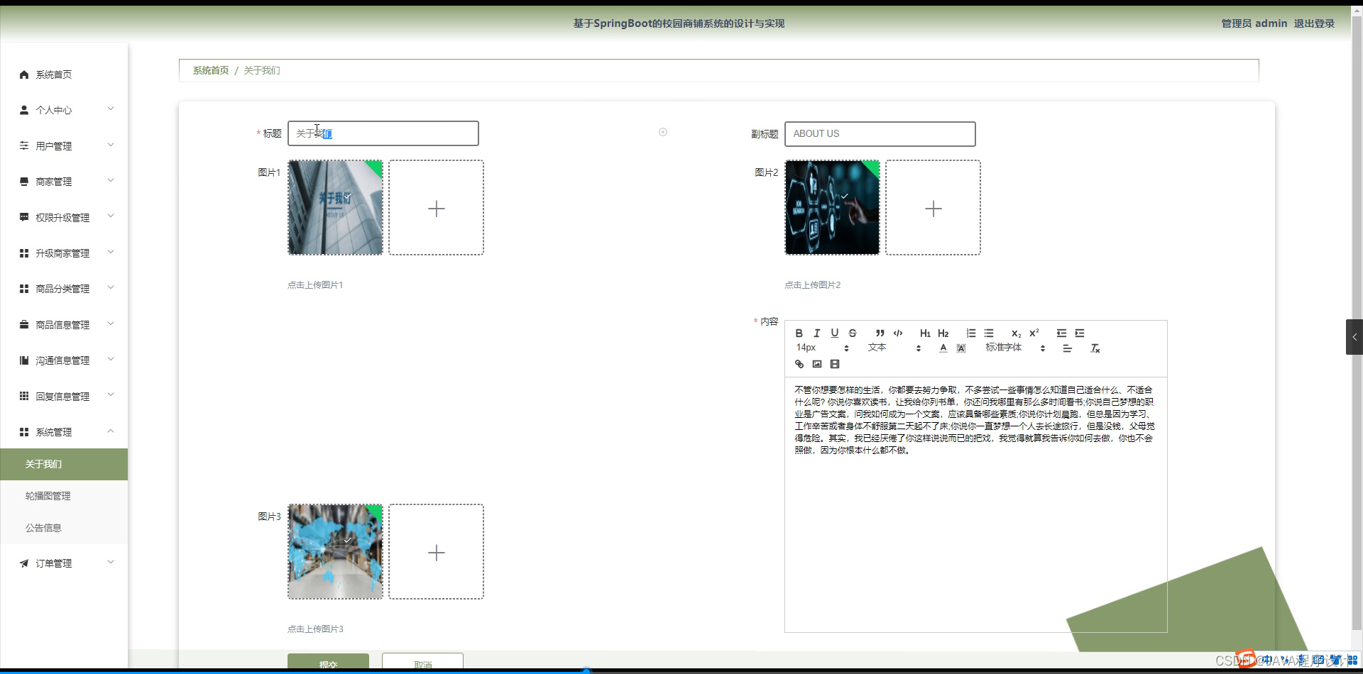 综上所述,校园商铺系统的设计与实现不仅是对传统校园商业模式的一种改革和升级,也是对校园信息化建设的一次重要尝试。通过该系统的建立,可以有效整合校园商业资源,优化商业服务流程,提升用户体验,具有显著的社会效益和经济价值。