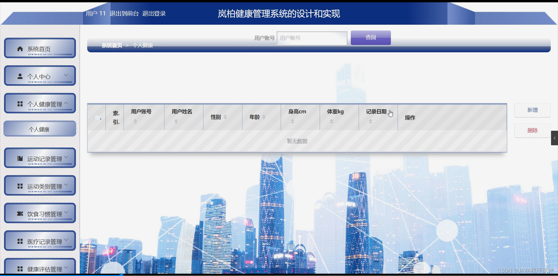 选题背景: 在当今社会,随着人们生活水平的提高和健康意识的增强,健康管理成为越来越多人关注的焦点。然而,面对琳琅满目的健康信息和复杂的管理方法,很多人感到困惑和无从下手。为了解决这个问题,一个智能化、个性化的岚柏健康管理系统应运而生。该系统通过整合前端技术(HTML、CSS、JavaScript、Vue)和后端技术(Python、Flask),以及MySQL数据库,为用户提供一个便捷、高效的健康管理平台。在这个平台上,用户可以方便地记录和管理自己的健康数据,如运动、饮食、睡眠等方面的信息,从而更好地了解自己的身体状况,制定合理的健康计划。